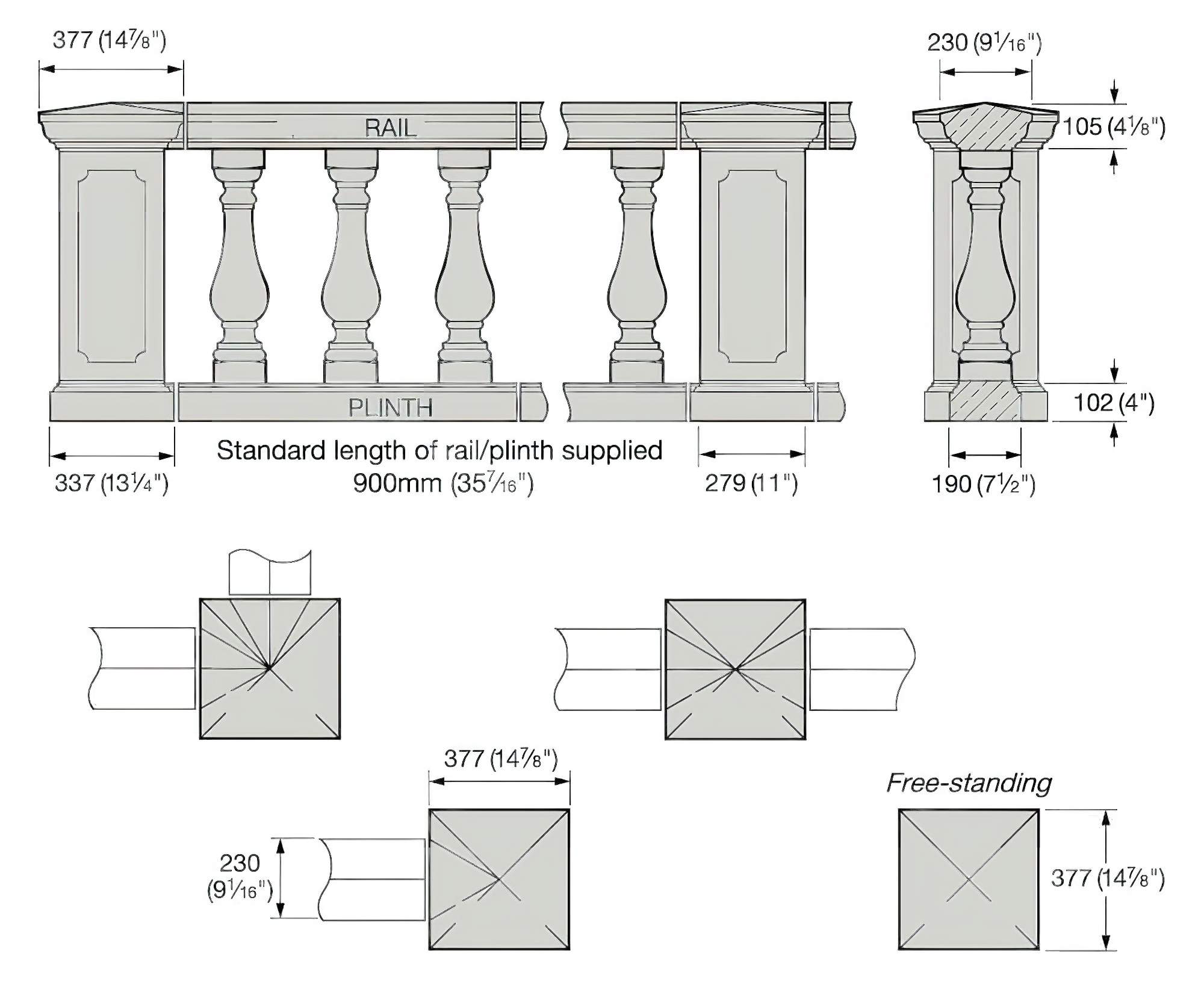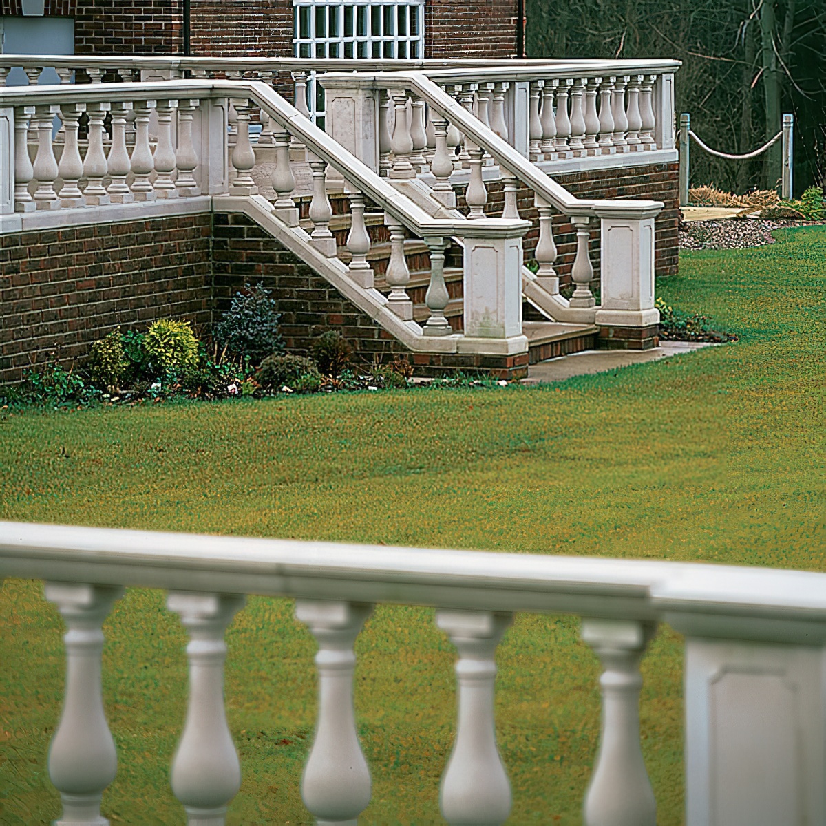 Die hier gezeigte Balustrade mit Handlauf, Baluster und Sockel wird in einem speziellen Formgussverfahren aus Sand, Weisszement und Eisenoxidpigmenten gefertigt. Durch die erdfeuchte Verarbeitung der Materialien Sand & Zement wird die Oberflächenstruktur dem natürlichen Sandstein nachempfunden. Wir bieten drei Grundfarben zur Auswahl: Sand, Weiss und Terrakotta. Die einzelnen Elemente des Balustraden-Bausystems können vor Ort einfach mit Zementkleber und Edelstahldübeln verbunden und montiert werden.