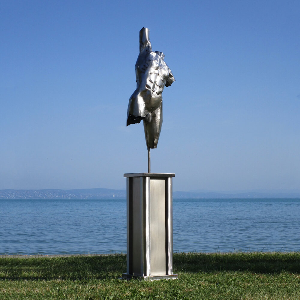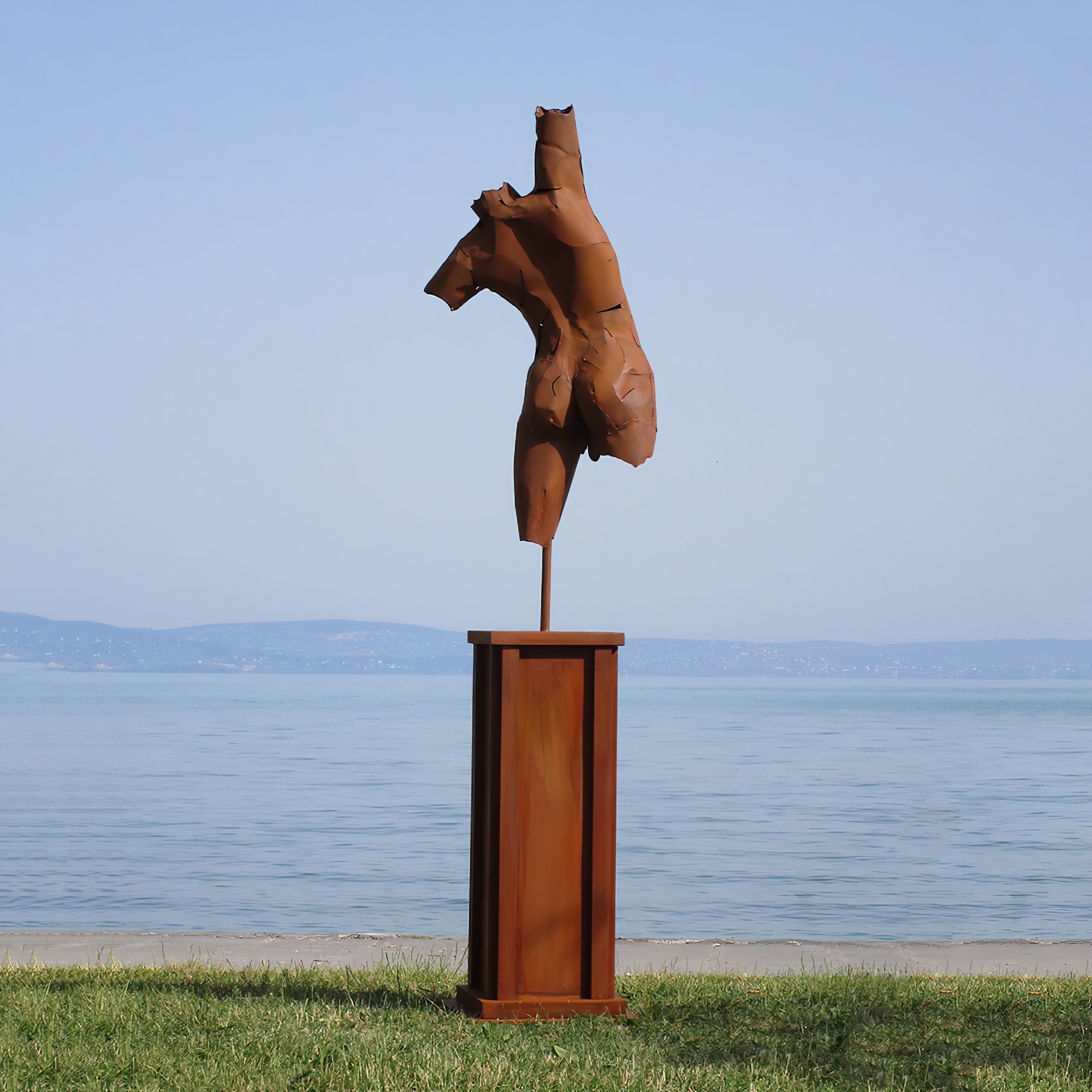 Die aussergewöhnlichen Skulpturen unseres ungarischen Künstlers sind handgefertigte Unikate. Sie werden entweder aus rostfreiem Edelstahl oder aus Stahl (St37) gefertigt. Letzterer wird mit einer Säure behandelt, wodurch eine attraktive Rost-Patina entsteht. Diese rostigen Skulpturen sind mit einer Schutzschicht versehen, die die Lebensdauer auf rund 50 Jahre verlängert. Nach Ablauf dieser Zeit können die Gartenskulpturen restauriert werden. Die Figuren sind wetter- und sturmfest. Der verwendete Stahl hat eine Materialstärke von etwa 0,5 bis 1 mm. Die Konstruktion wird innen mit Rundeisen und Rohren stabilisiert. Befestigungsvorrichtungen für die Bodenmontage, wie Schrauben oder Ösen, sind bereits vorgesehen, sodass die Skulpturen einfach im Garten montiert werden können.