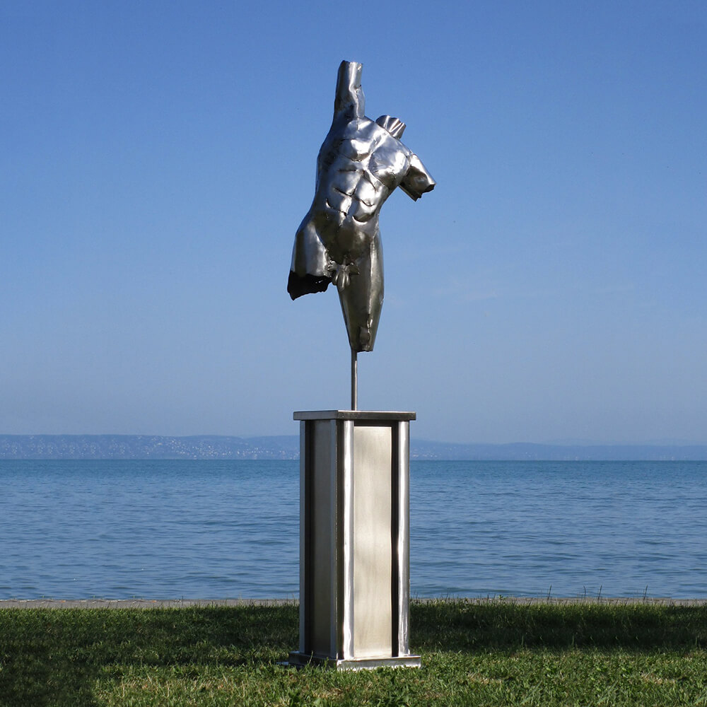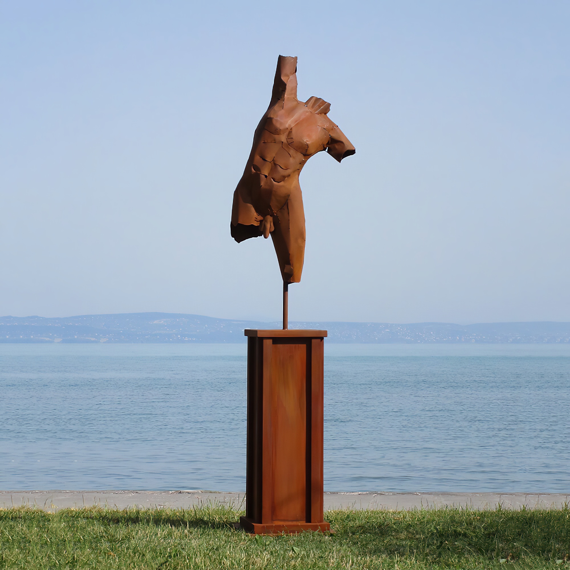 Figur Mann Torso auf Sockel - Edelstahl oder Rost - Herofo / Stahl - Rost