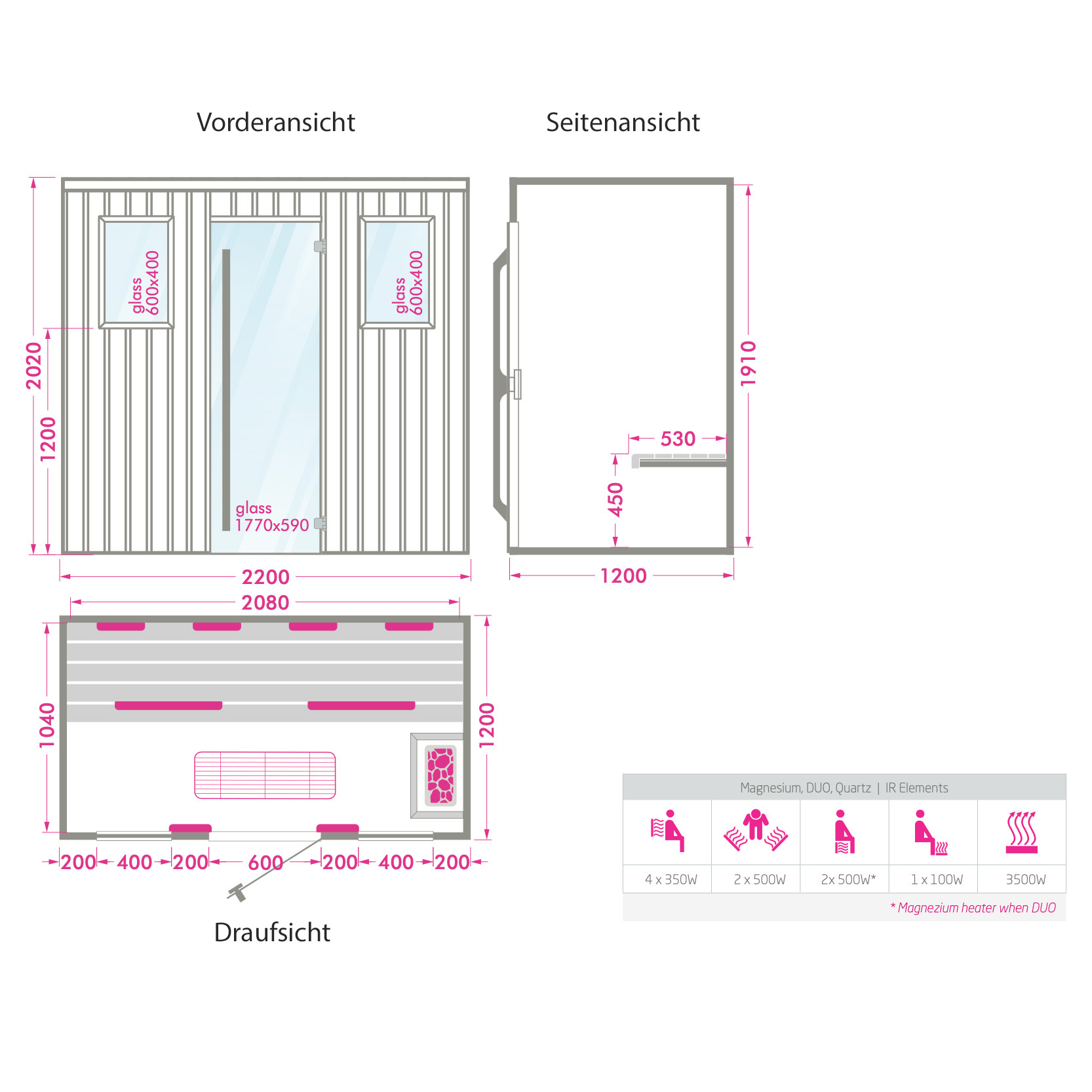 3 Personen Indoorkabine für finnische Sauna und Infrarot-Wärmetherapie - Taous / mit Magnesiumheizung