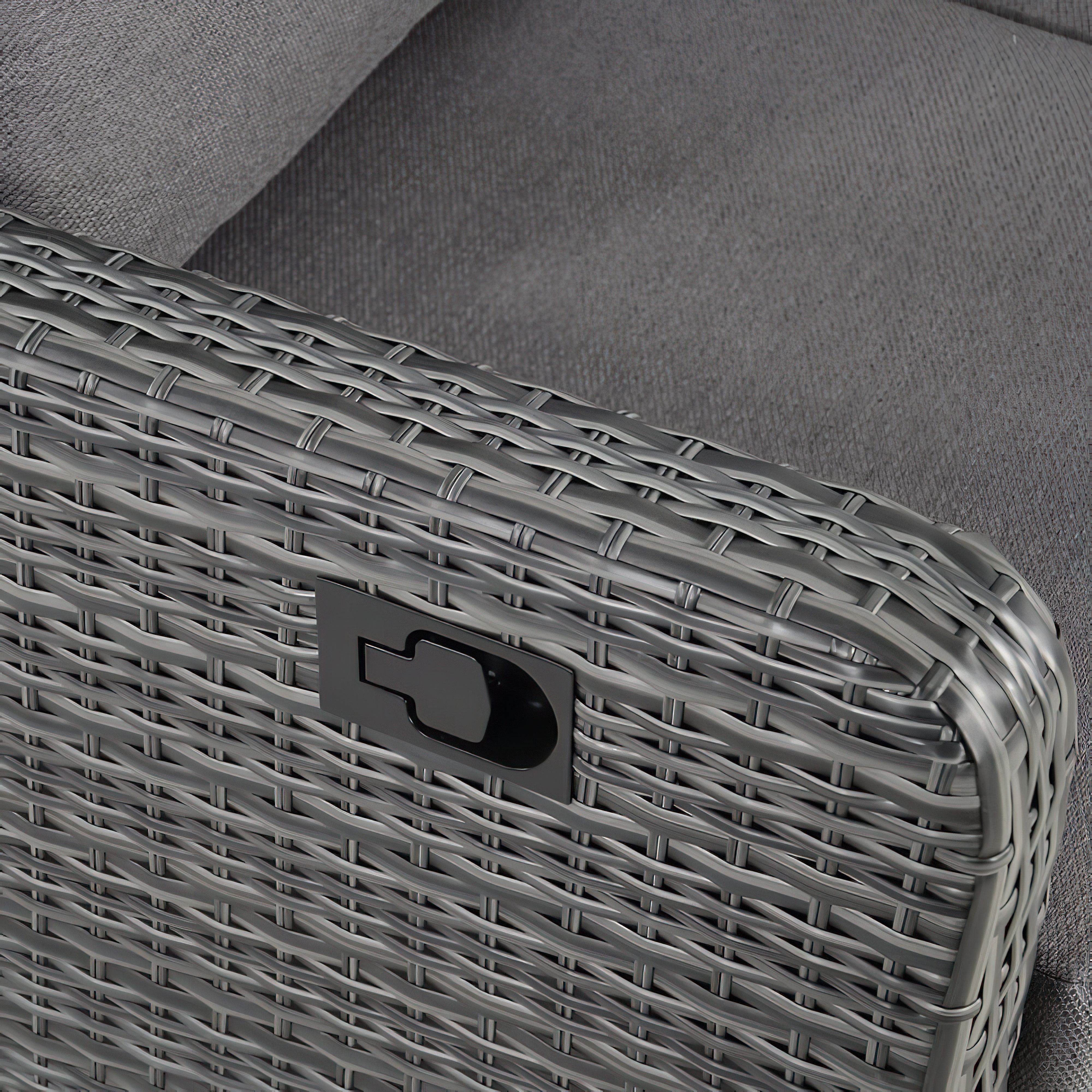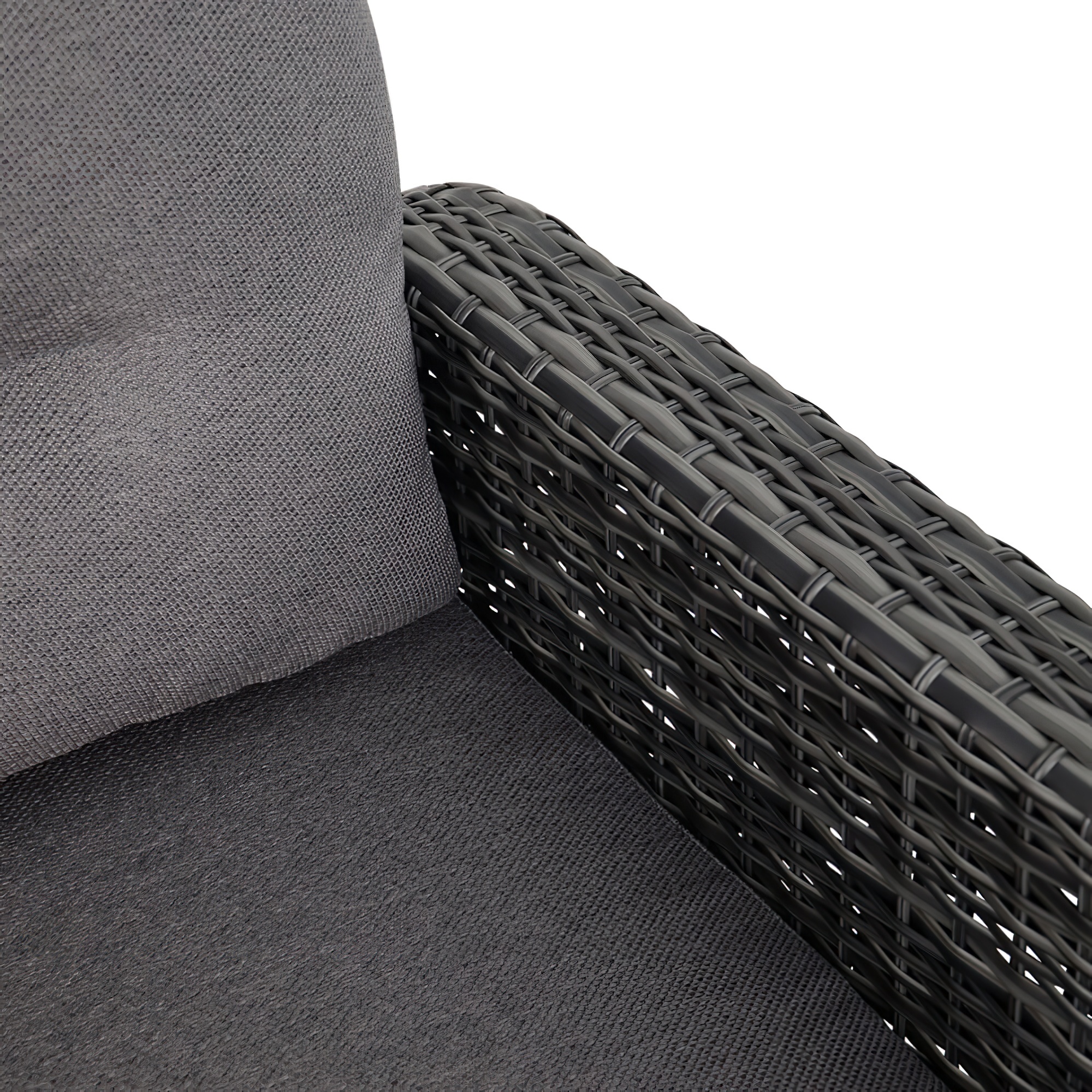 Ce canapé de jardin est fabriqué en aluminium sous un contrôle qualité rigoureux. La structure est recouverte d'un tressage en polyéthylène imitant le rotin. Les brins sont semi-ronds et mesurent 8x2 mm d'épaisseur. Ce meuble d'extérieur résiste aux intempéries et peut être utilisé toute l'année en plein air. Les coussins de 10 cm d'épaisseur sont confectionnés en polyester filé (220 gr/m²) avec un rembourrage en mousse et coton. La hauteur d'assise est de 31,5 cm sans coussin. Pour le nettoyage, un simple chiffon humide suffit. Il est déconseillé d'utiliser des produits acides, car ils pourraient endommager la surface et compromettre la résistance aux intempéries.