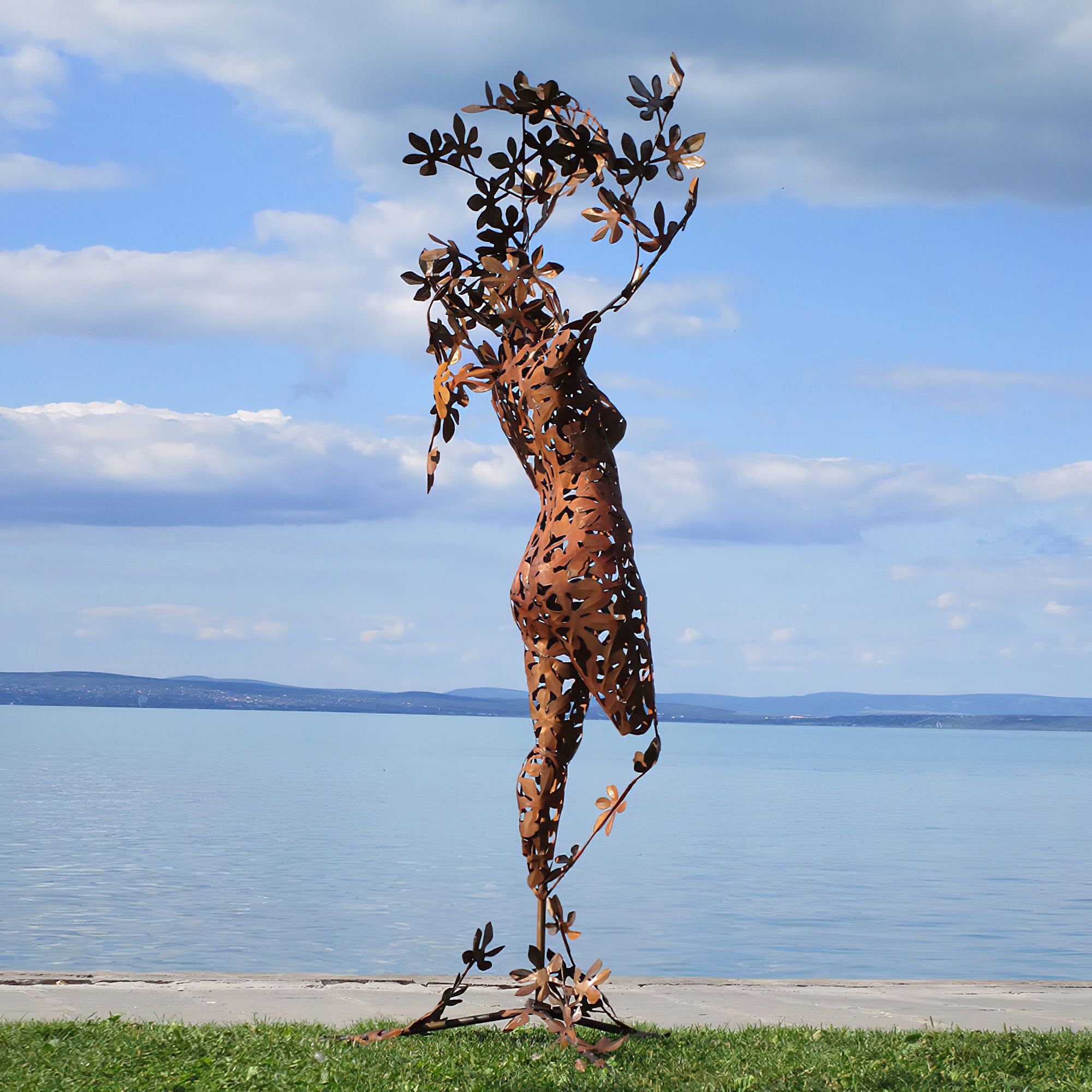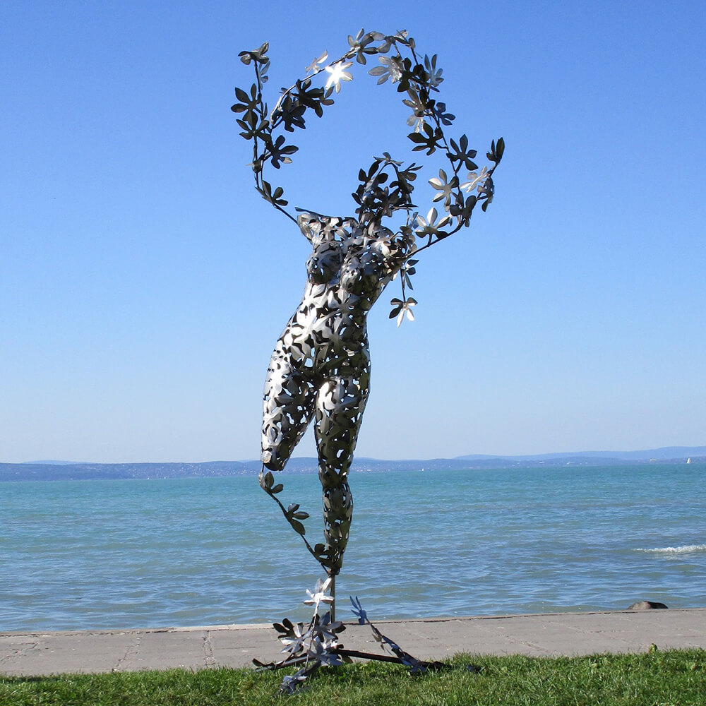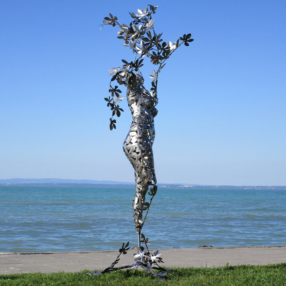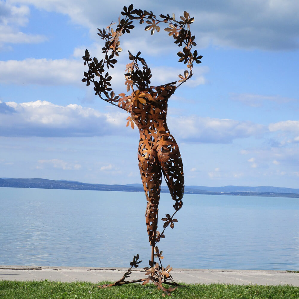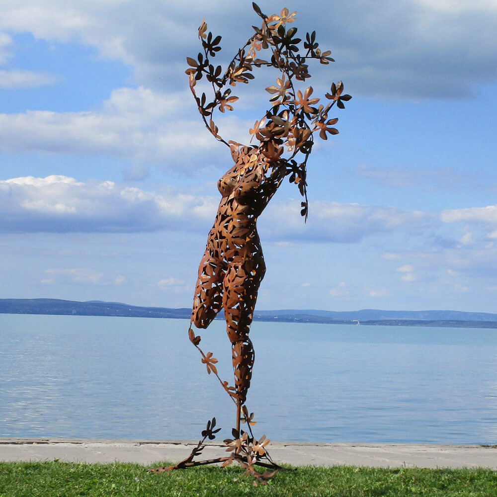 Les figurines de jardin exceptionnelles de l'artiste hongrois sont des pièces uniques fabriquées artisanalement. Ces sculptures sont conçues selon des techniques traditionnelles. Elles sont réalisées soit en acier inoxydable, soit en acier (St37) traité à l'acide pour obtenir une patine rouillée attrayante. Les sculptures rouillées sont protégées par une couche de finition qui prolonge leur durée de vie à environ 50 ans. Après cette période, les sculptures de jardin peuvent être restaurées. L'acier utilisé a une épaisseur d'environ 0,5 à 0,8 mm. Des dispositifs de fixation adaptés pour une installation au sol ou mural, sous forme de vis ou d'œillets, sont déjà prévus, permettant ainsi un montage facile des sculptures dans votre jardin.
