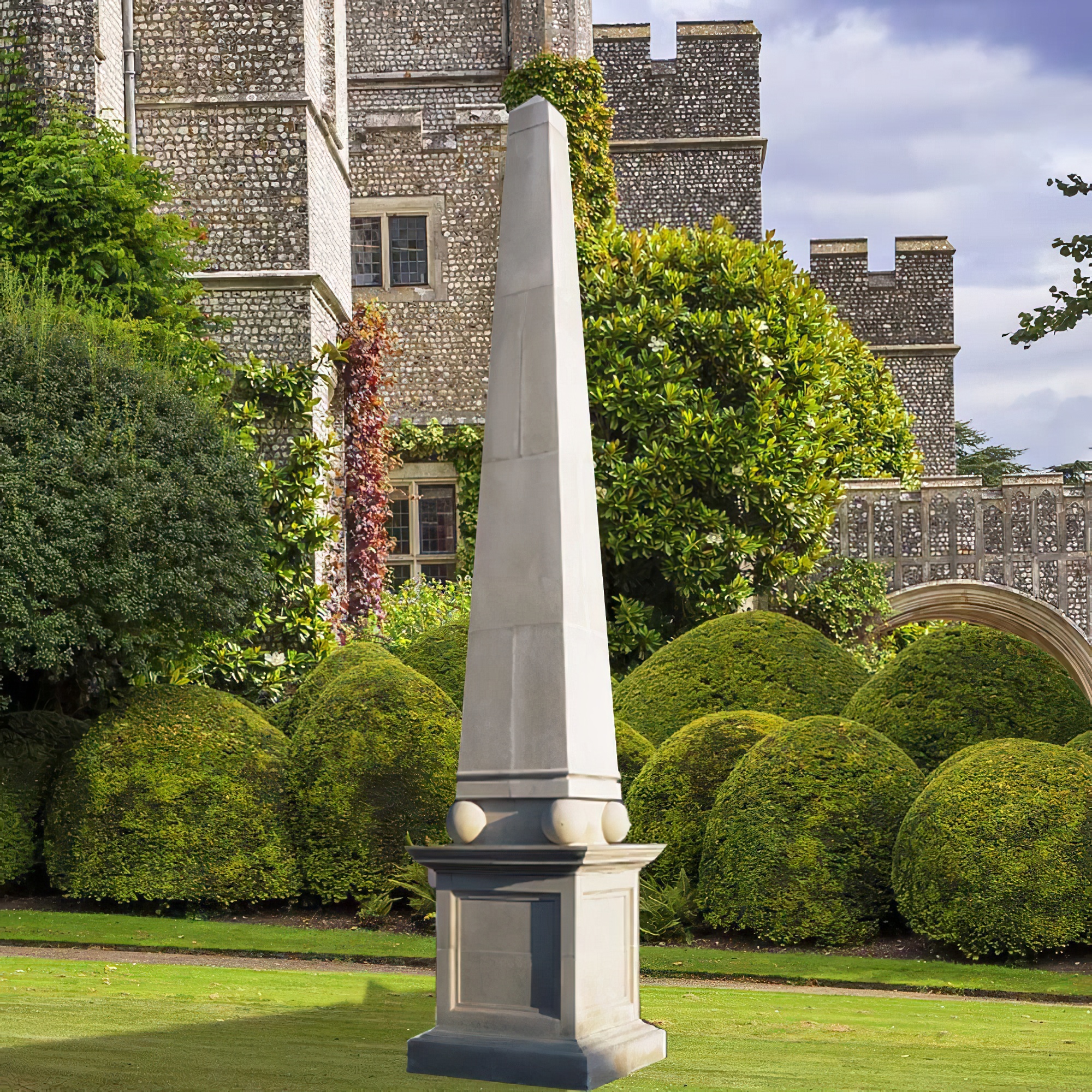 Ce grand obélisque pour jardin est conçu dans un style égyptien. Cet imposant et majestueux obélisque peut devenir un point d'attraction remarquable dans un vaste jardin ou un parc. Pour toute question ou demande d'information, n'hésitez pas à nous contacter par téléphone ou par e-mail. Nos produits sont fabriqués en pierre moulée et résistent aux intempéries.