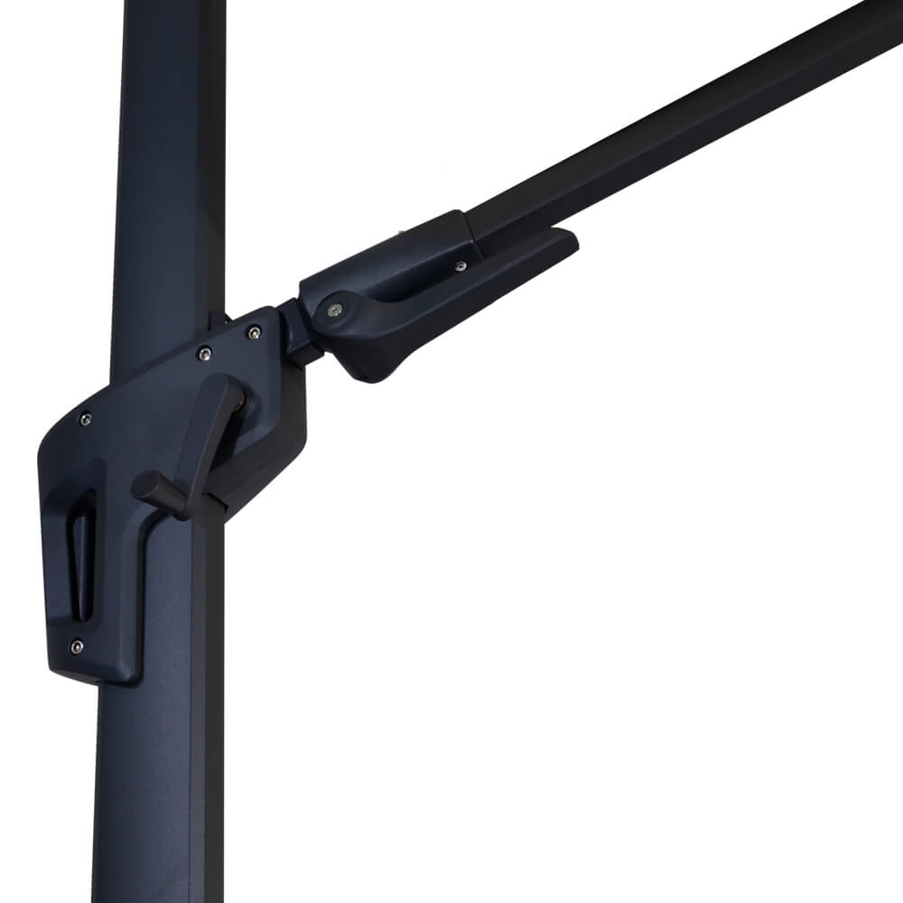 Ce magnifique parasol est conçu avec une structure en aluminium. Le cadre est revêtu d'une finition mate couleur anthracite. Huit baleines tendent la toile du parasol. Le polyester de 250 g/m² est robuste et offre une protection UV jusqu'à 50+. Grâce à une manivelle, le parasol s'ouvre et se ferme facilement. Il peut pivoter à 360 degrés. Une housse de protection en polyéthylène est incluse dans la livraison. Pour le nettoyage, nous recommandons de l'eau et une éponge. Il est déconseillé d'utiliser des produits nettoyants acides, car ils peuvent endommager le tissu et réduire sa durabilité. Pour protéger le parasol, il est conseillé de le couvrir avec une housse adaptée contre les intempéries.