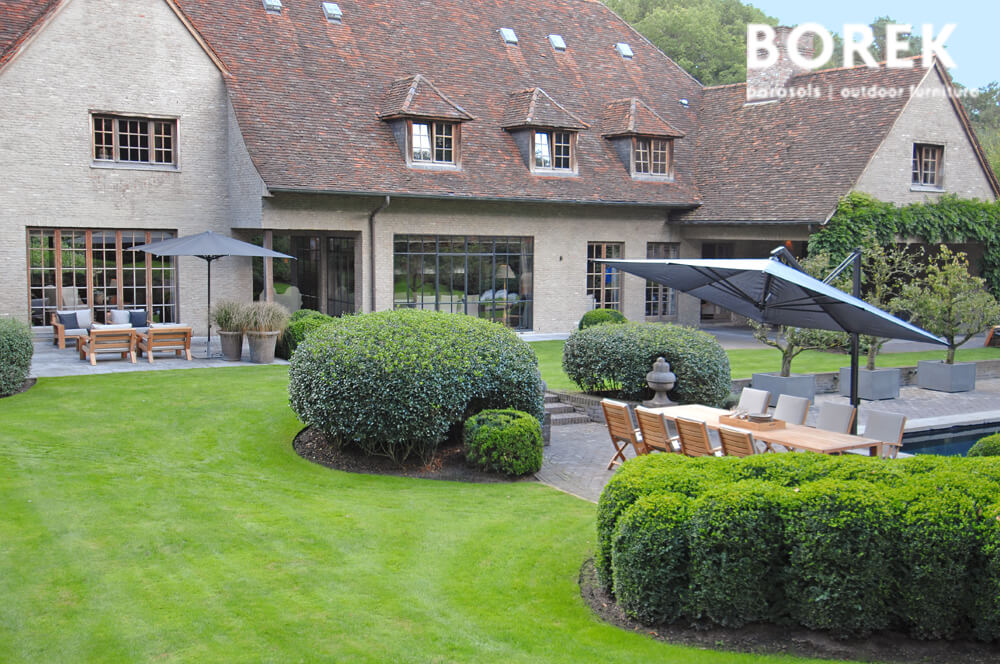Parasols déportés pour jardins contemporains