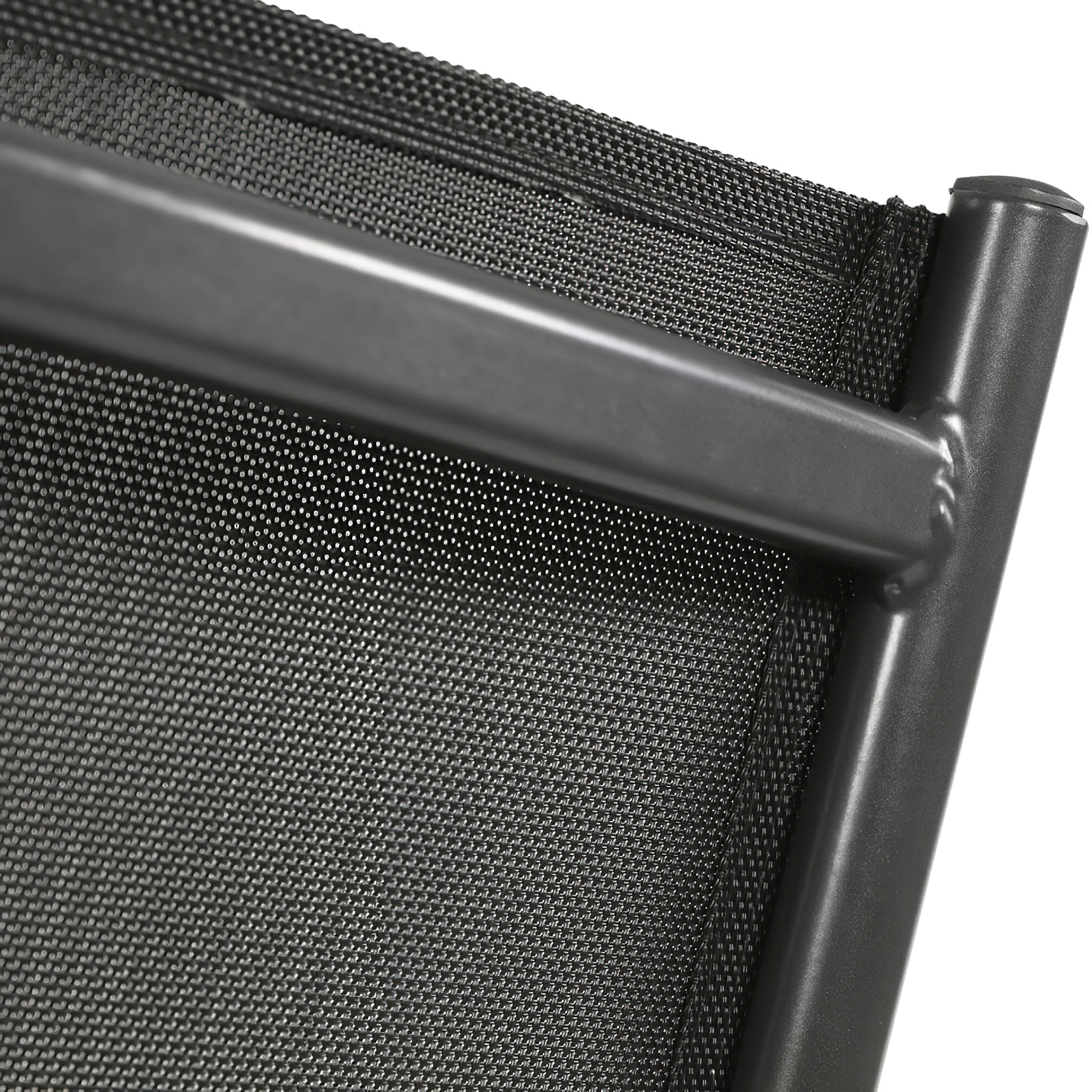 Cette chaise de jardin robuste est moulée en aluminium sous un contrôle qualité rigoureux et bénéficie d'un revêtement en poudre de couleur anthracite. L'assise est tendue avec un tissu Textylène noir. Ce meuble d'extérieur est résistant aux intempéries. Pour le nettoyage, un simple chiffon humide suffit. Il est déconseillé d'utiliser des produits nettoyants acides, car ils pourraient endommager la surface et compromettre la résistance aux conditions météorologiques.