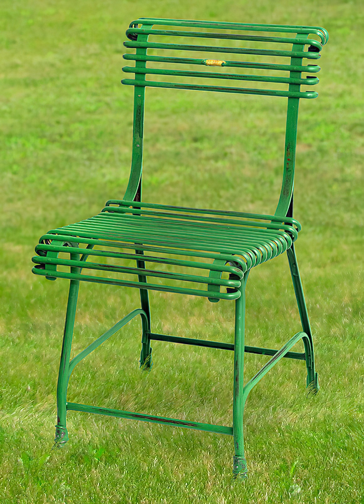 Antik nostalgischer Garten Stuhl aus Eisen - Ambre / grün