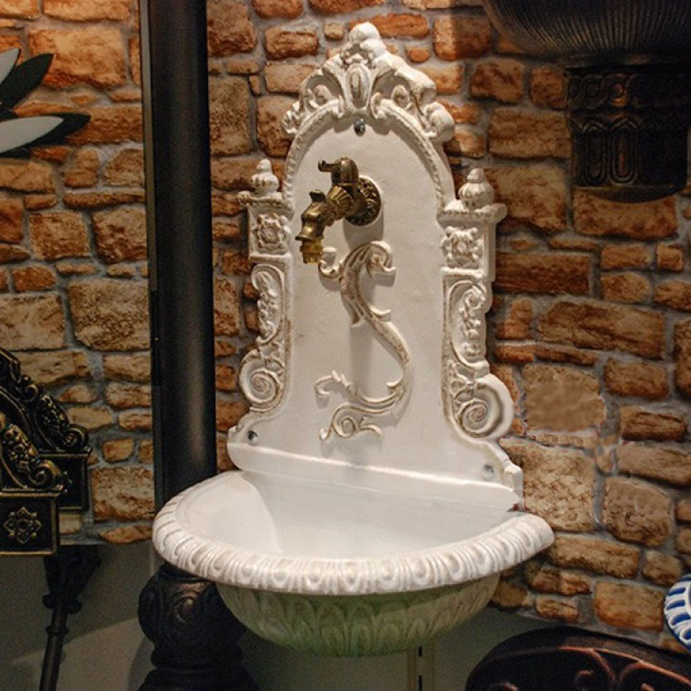 Antiker Wandbrunnen aus Gusseisen als Stadt- und Gartendekoration - Jarle / Weiß