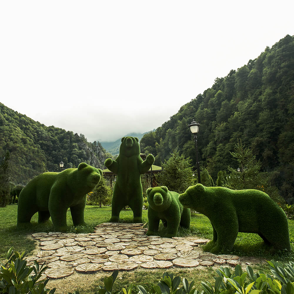 La topiaire est une technique d'aménagement paysager. À l'origine, elle désignait des buis, des haies et d'autres plantes taillées en formes précises. Qu'il s'agisse d'animaux, de formes géométriques ou d'œuvres d'art abstraites, tout est possible. Avec nos sculptures uniques, les possibilités de création dans l'aménagement paysager moderne sont presque illimitées. Ces figures taillées peuvent être personnalisées, ne sont pas limitées par la croissance ou d'autres facteurs biologiques, et conviennent parfaitement à une installation permanente en extérieur.