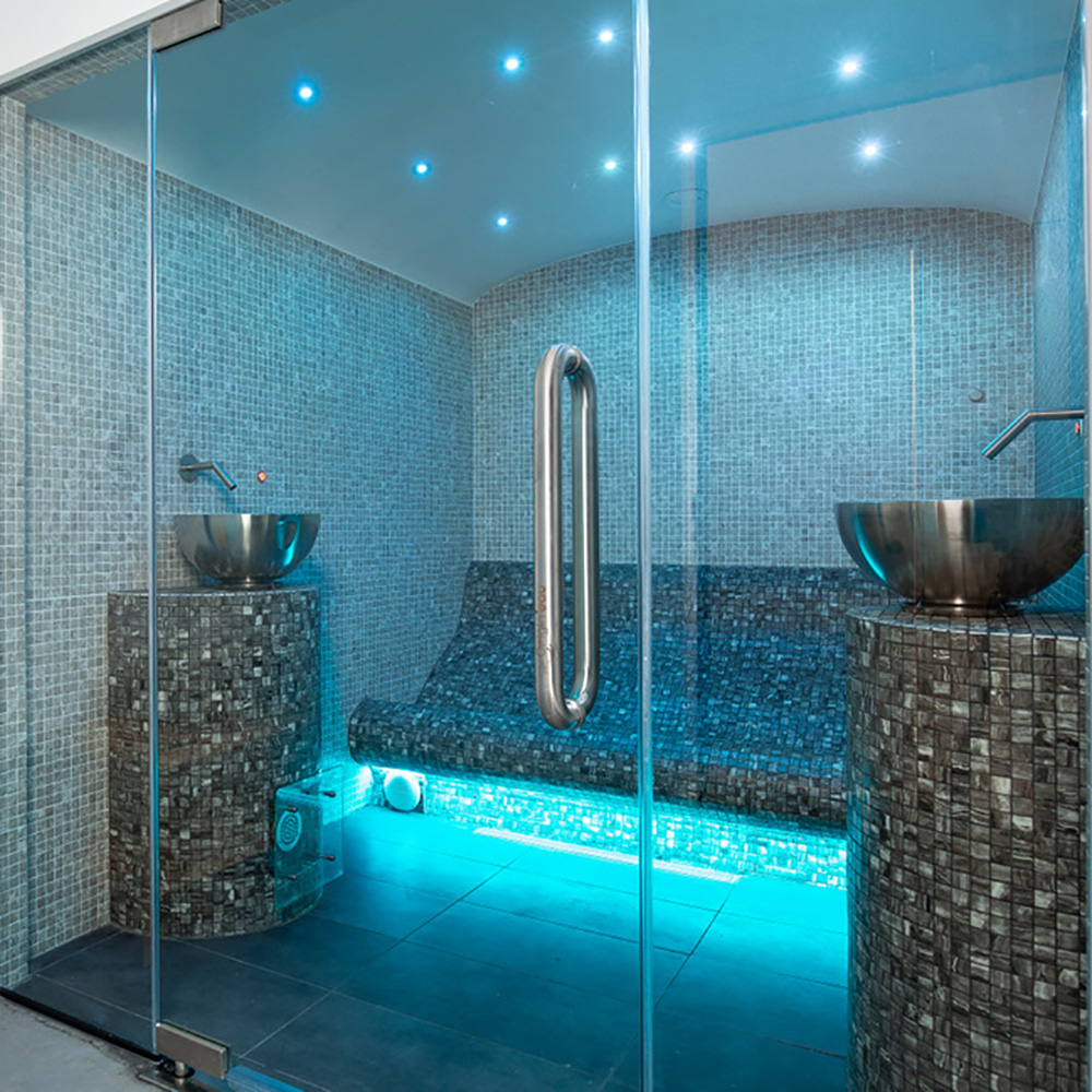Le bain de vapeur est livré avec un équipement complet. Certains éléments sont à choisir par vos soins. Des souhaits supplémentaires de design et d'équipement ainsi que des solutions bien-être sur mesure sont possibles. Voici un aperçu de l'équipement standard :