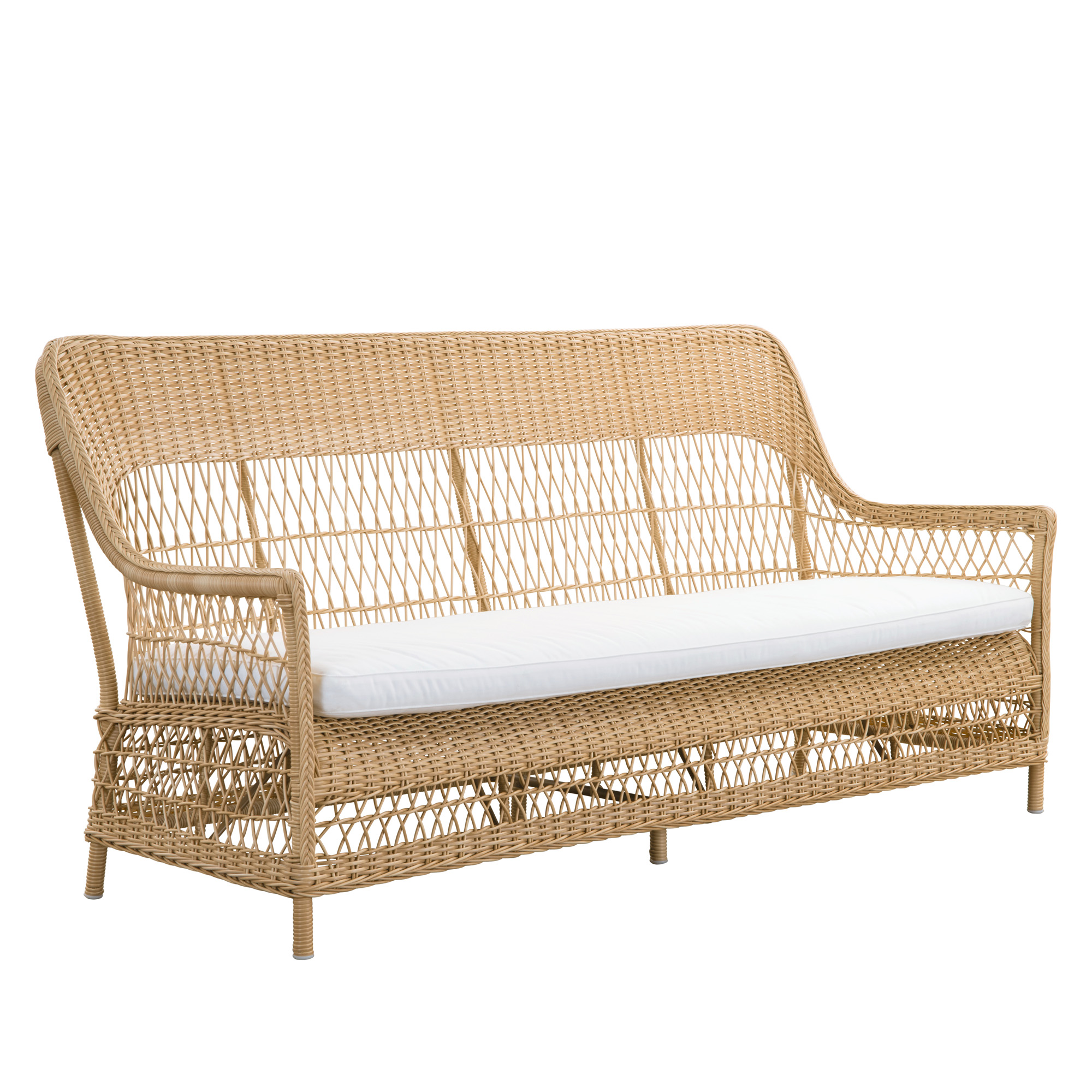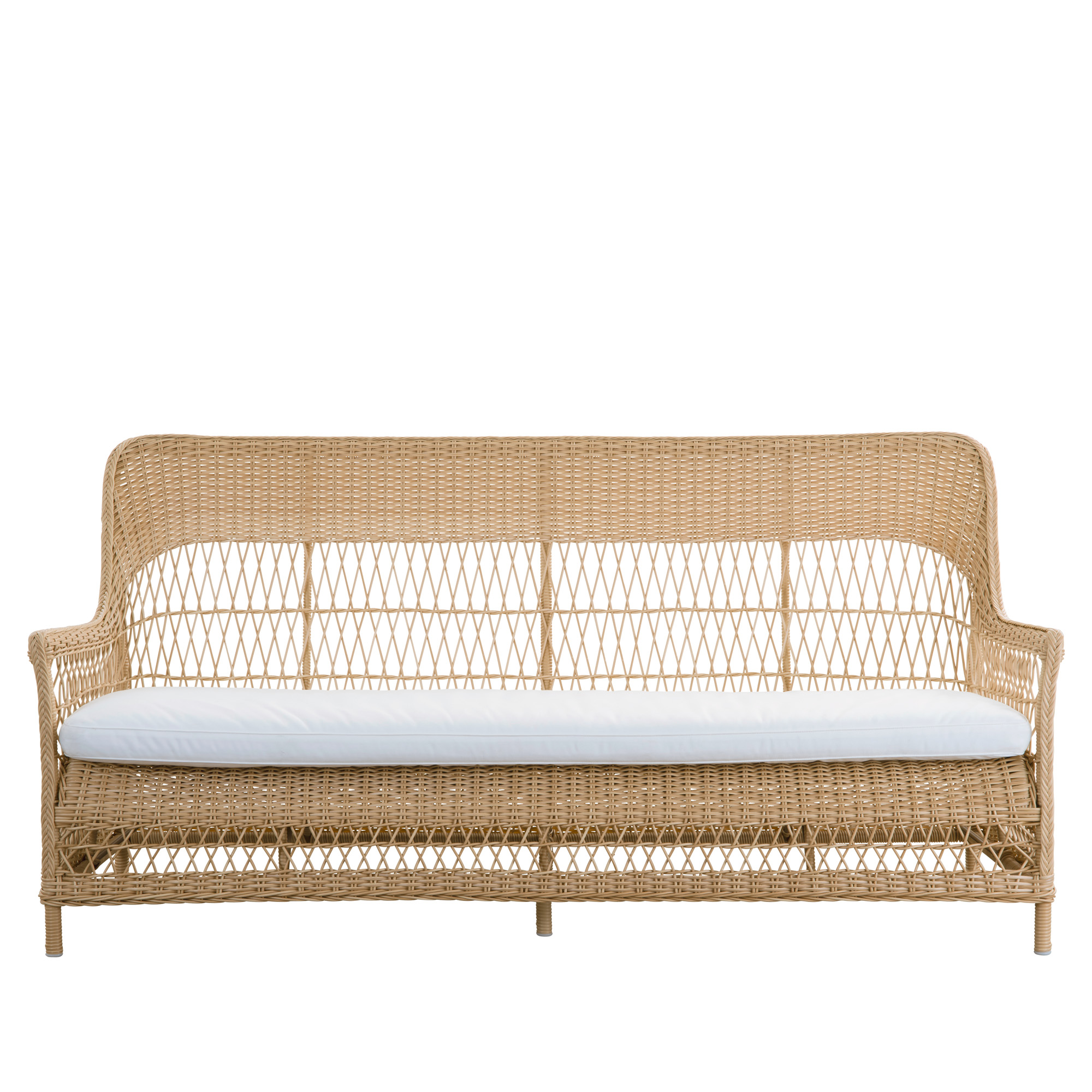 Braunes Outdoor Sofa für drei Personen aus Aluminium und wetterbeständiger Rattanfaser - 3-Sitzer Anike / ohne Sitzkissen