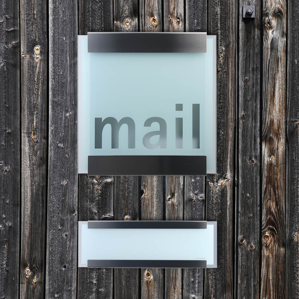 Briefkasten modern mit Aufschrift - Glas & Edelstahl - Artemis