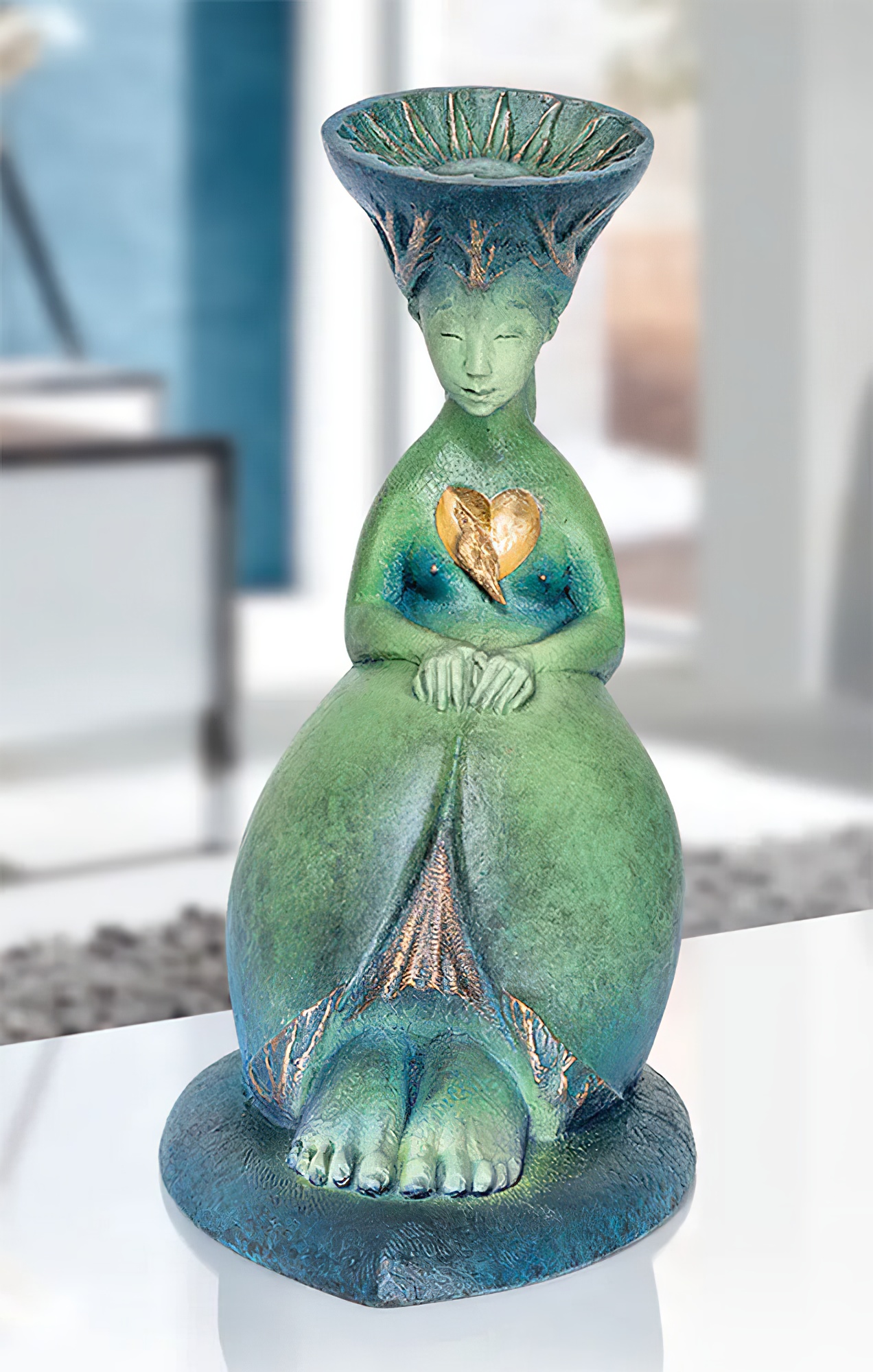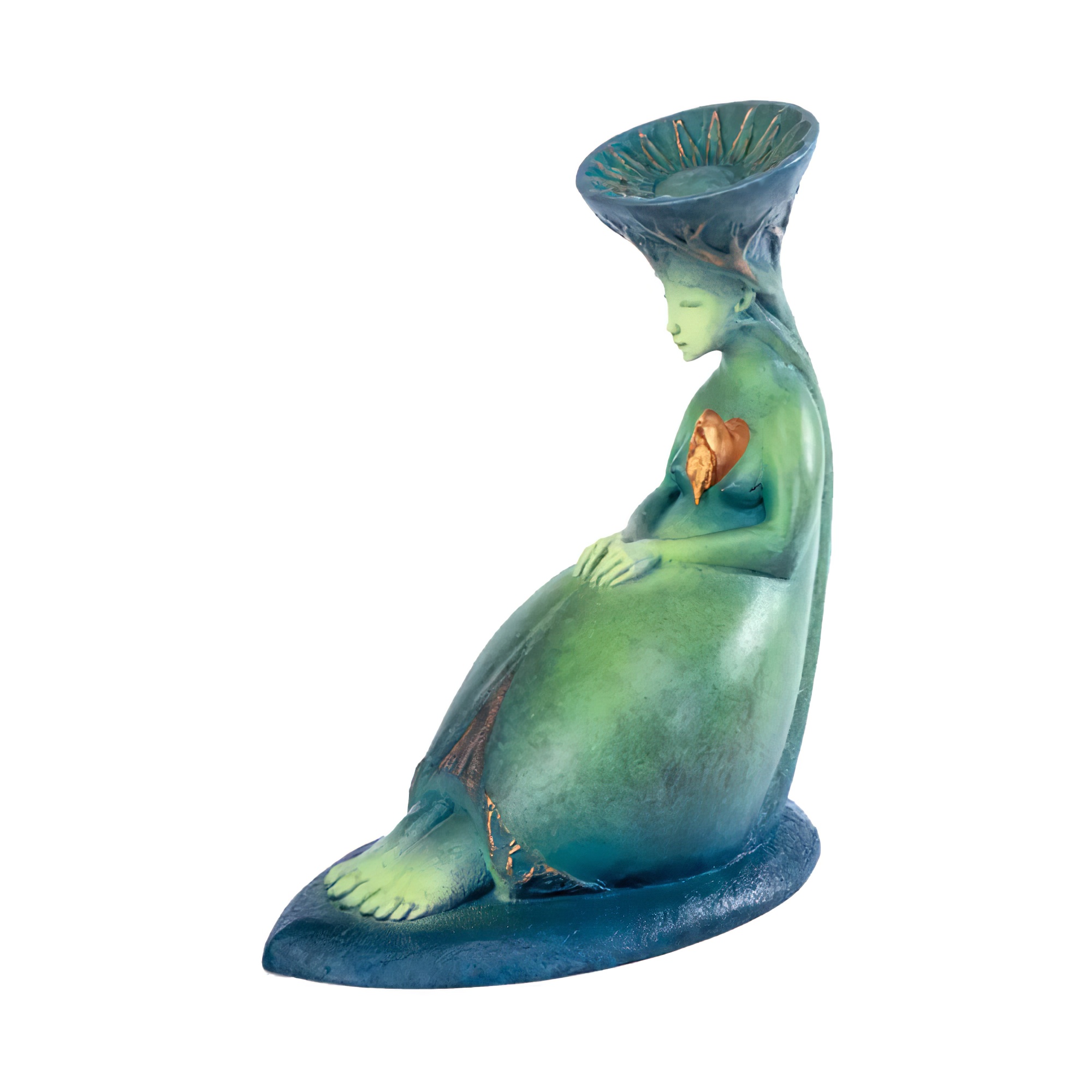 Bronze Mädchenskulptur mit goldenem Vogel - Singing Bird