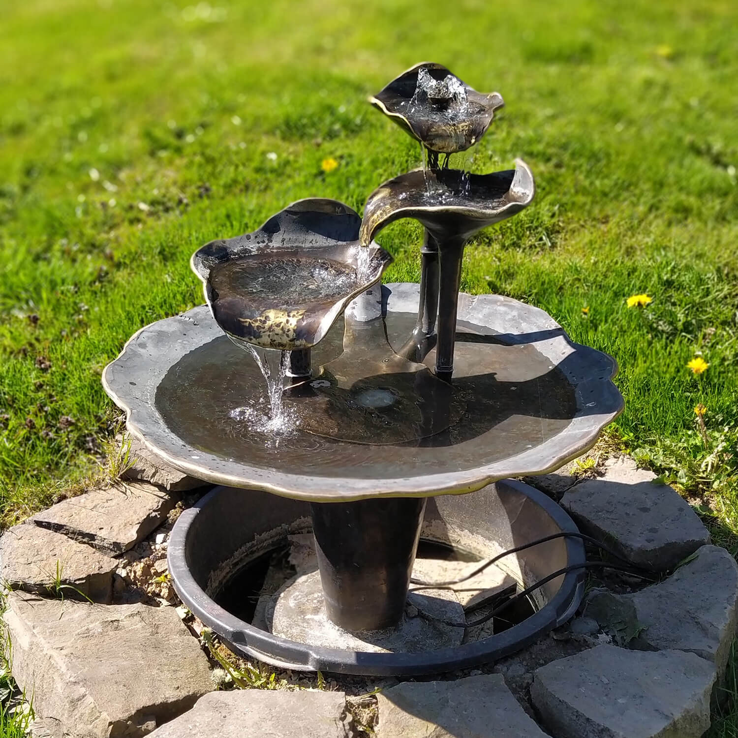 Brunnen aus Schmiedebronze mit Blättern - handwerkliches Unikat - Etorurau