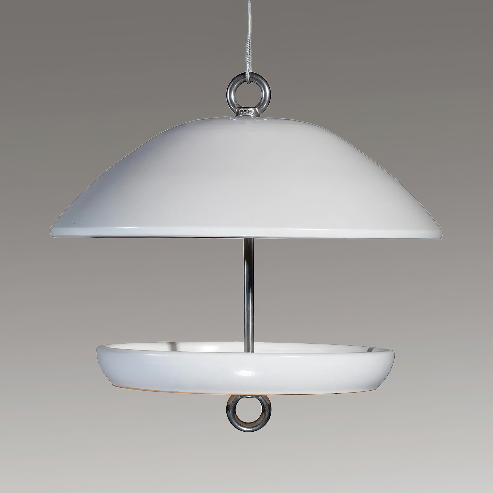 Weißes Garten Vogelhaus zum Aufhängen aus Steinzeug - Winterfest - Rund - Birdy Blanc