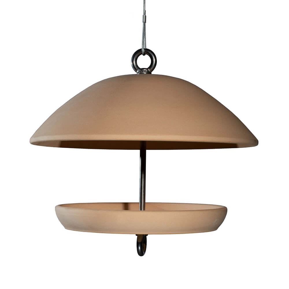 Runde Garten Vogelfutterstelle zum Aufhängen aus Steinzeug - Winterfest - Terrakotta - Birdy Terra hell