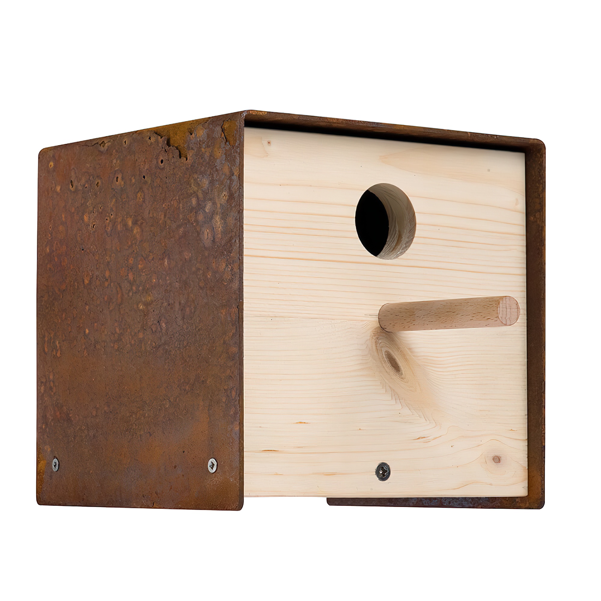 Rustikaler Teelichthalter - Vögel auf Zweigenkranz - Rostoptik - Teelichthalter Rusako