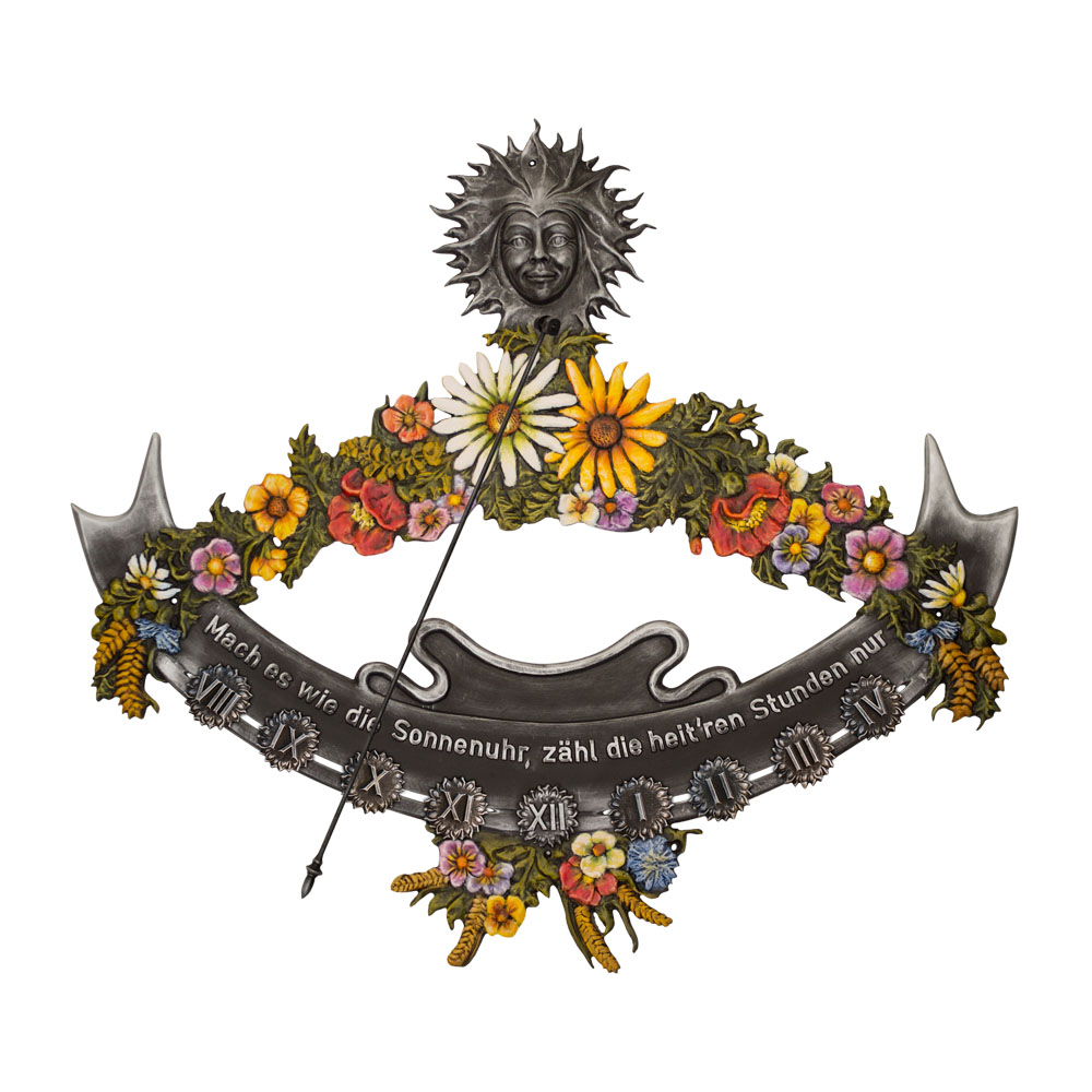 Vertikal Sonnenuhr mit Blumenmotiv zur Wandmontage kaufen - Blumenkranz