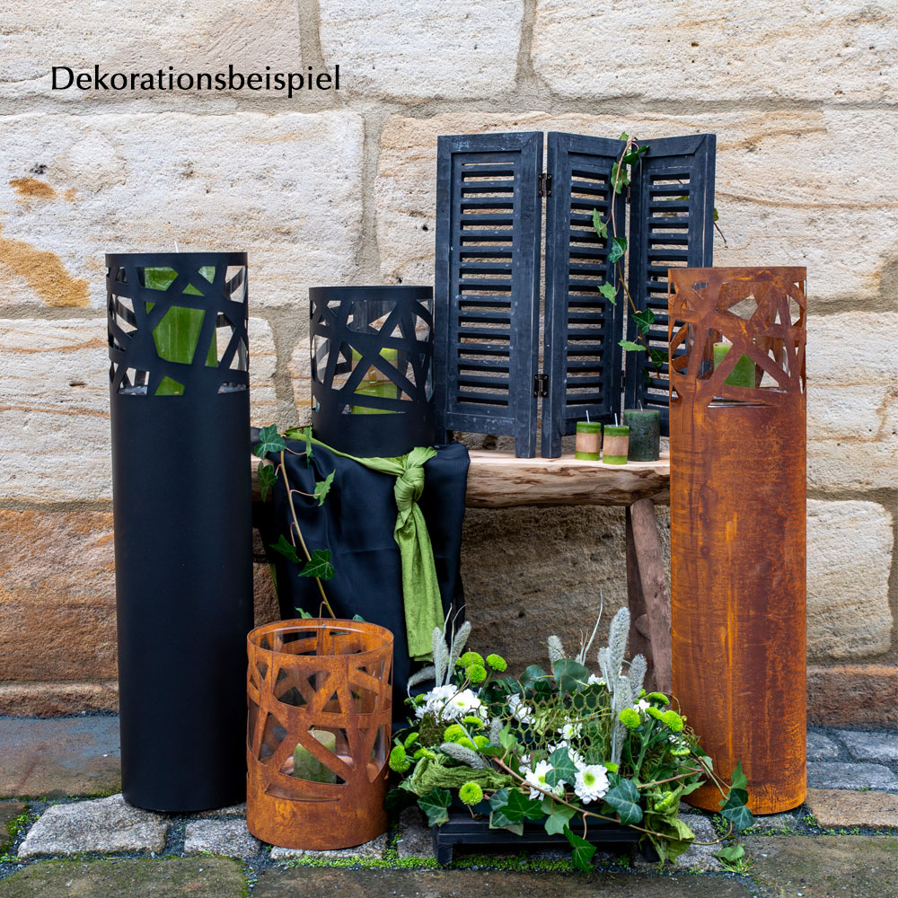 Stehende Gartenlaterne mit Blätterranke aus Rost Metall für Kerzen - Licht Faro