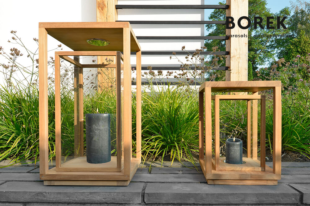 Laterne aus Teakholz 41cm hoch von Borek - Laterne Positano