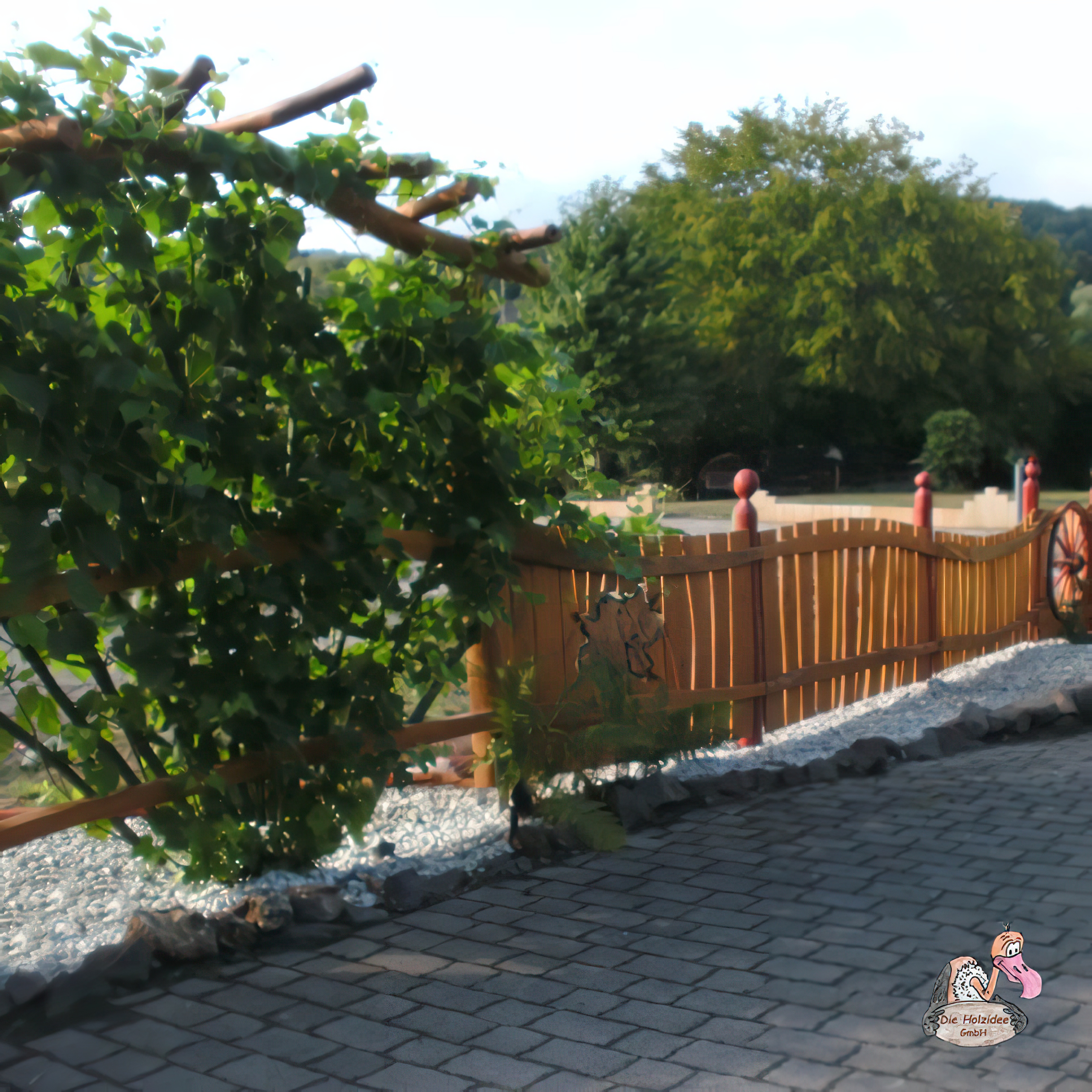 Bretterzaun aus Holz für den Garten mit geschnitzten Pfosten - Zaun Wuschel