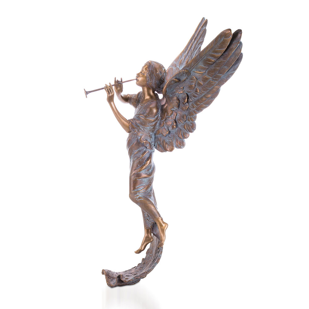 Metallengel mit Trompete als Kantendeko - Angelo Sentar / Aluminium dunkelgrau