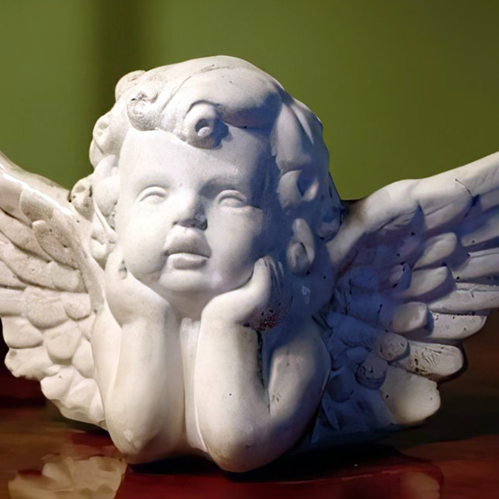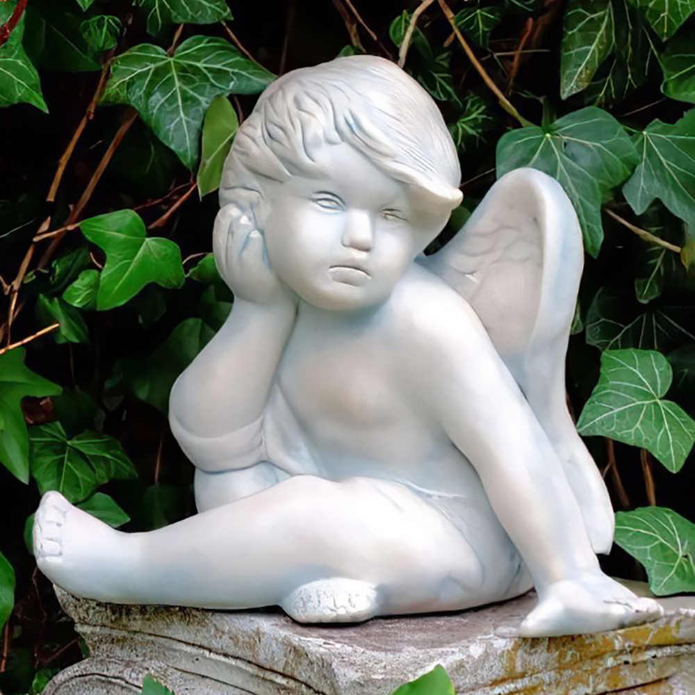 Kleiner sitzender Himmelsbote aus Marmorguss - Träumender Engel