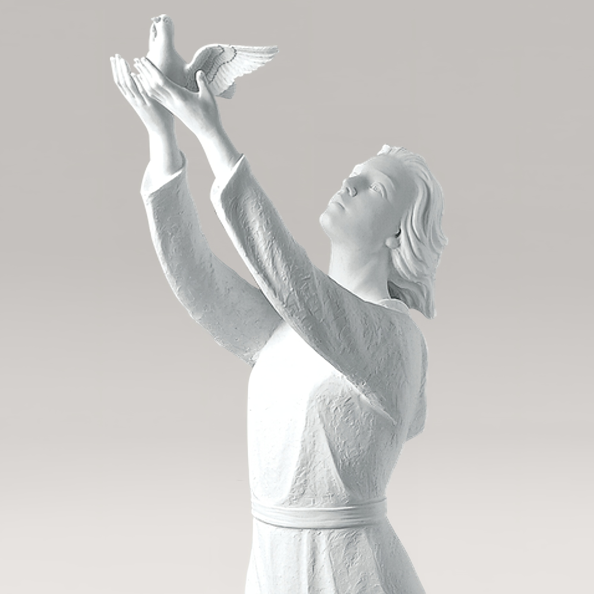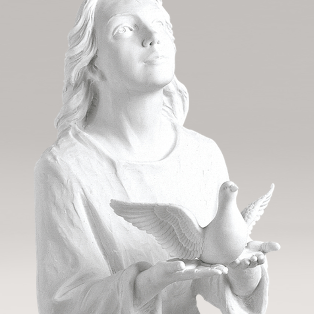 Stehende Gnadenmutter mit Vogel aus Marmorguss - Maria Volante