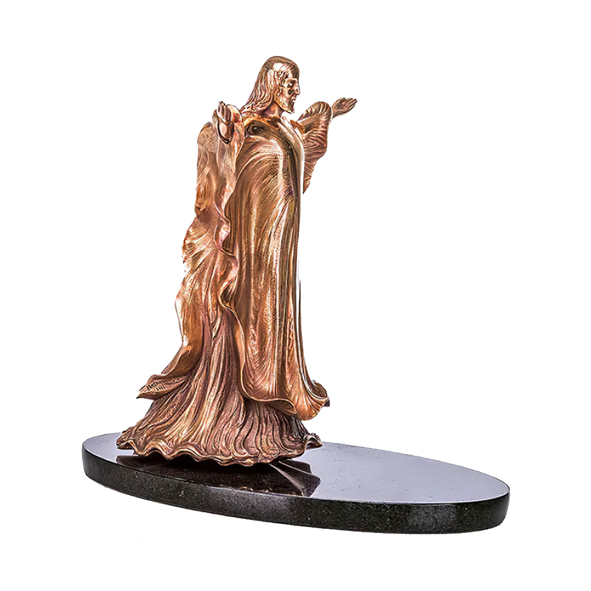 Klassische Jesus Gartenfigur aus Bronze mit Herzornament - Jesus mit Herz