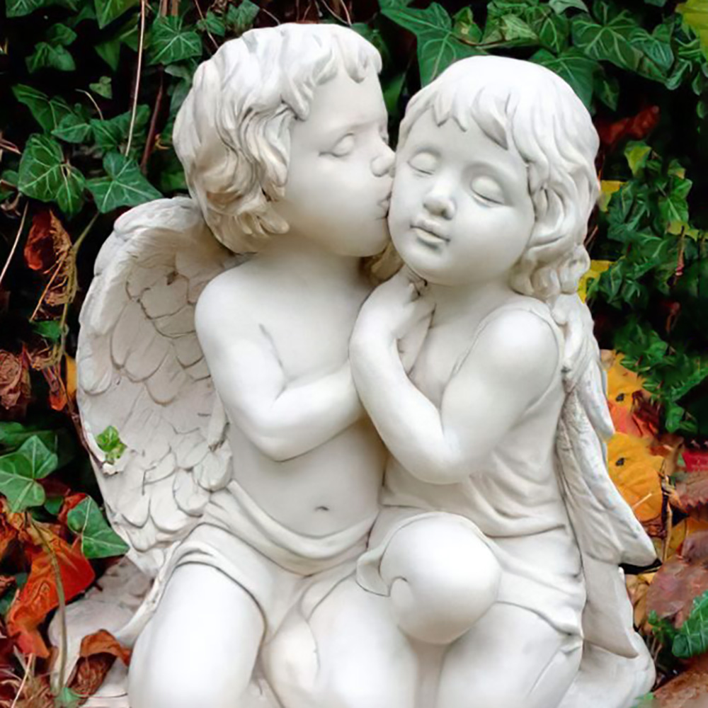 Liebendes Engelpärchen aus Steinguss für den Garten - Teres & Aretha / Etna