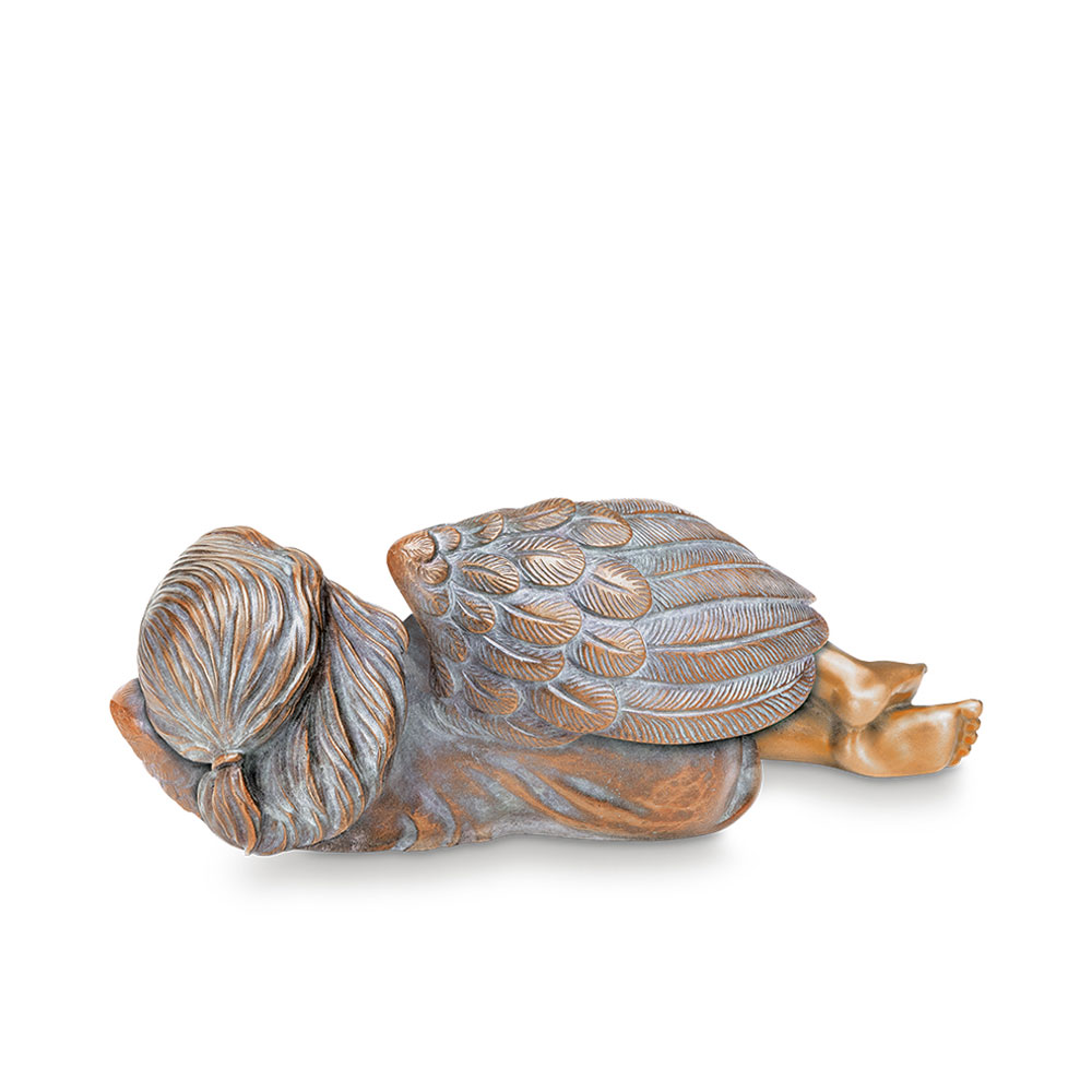Lesender Bronzeengel mit Buch - liegend - Angelo mit Buch / 15x18x13cm (HxBxT) / Bronze braun