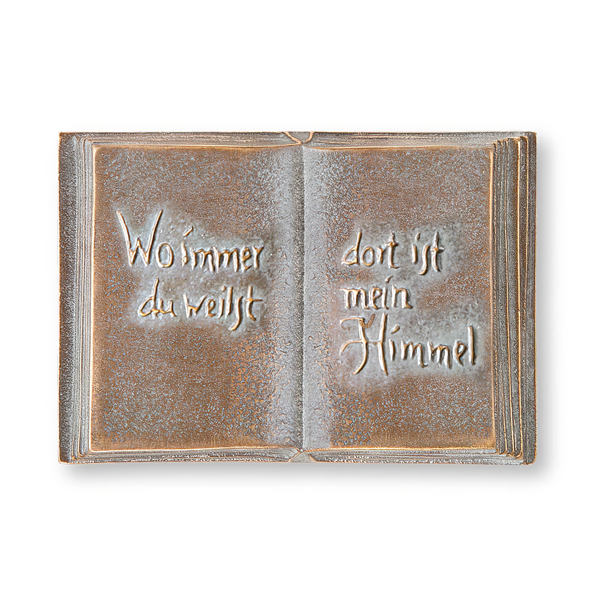 Bronzengel mit Buch - Inschrift deutsch - Angelo Germanica / 15x18x13cm (HxBxT) / Bronze braun
