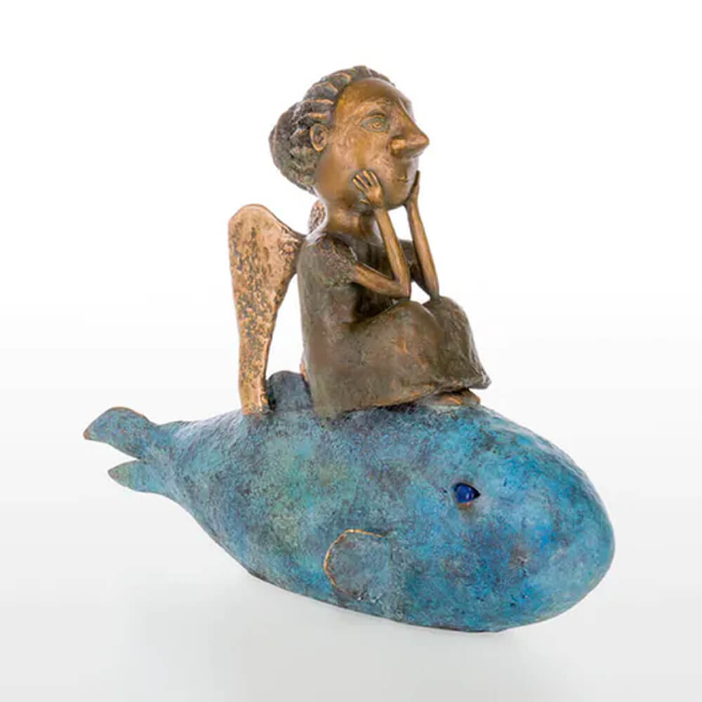 Limitierte Bronzeplastik - Engel sitzt auf Wal - Girl on a fish