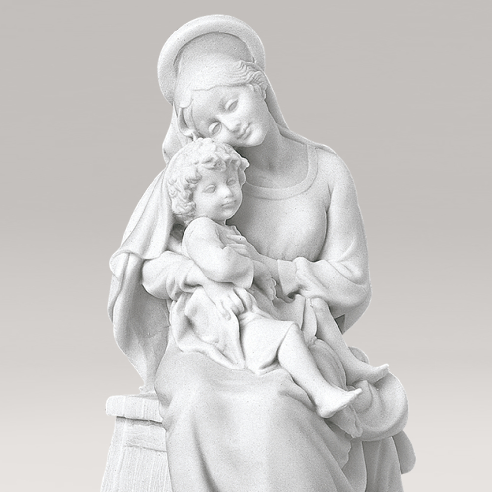 Sitzende Gartenstatue Madonna mit Kind - Marmorguss - Maria Pia Mater