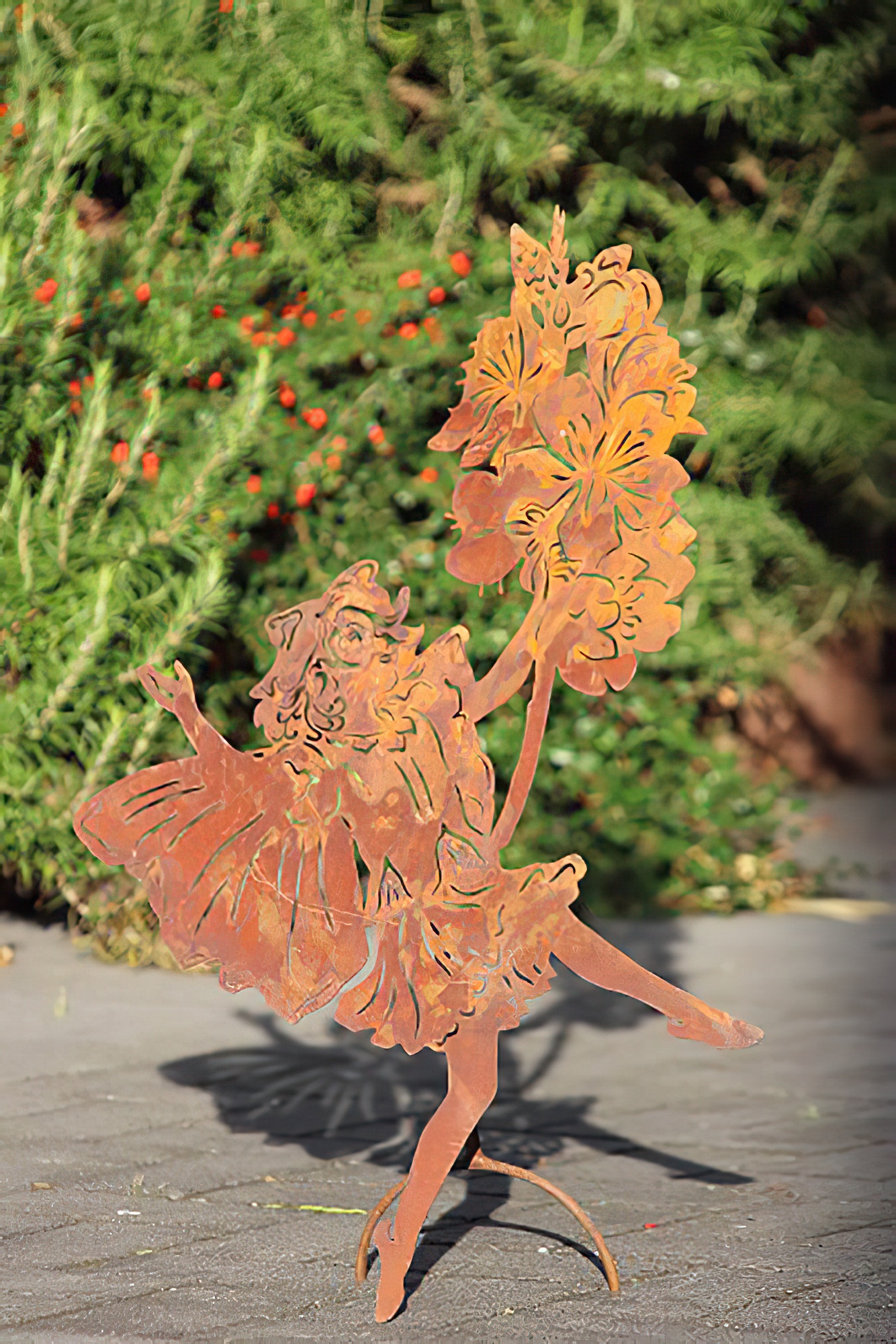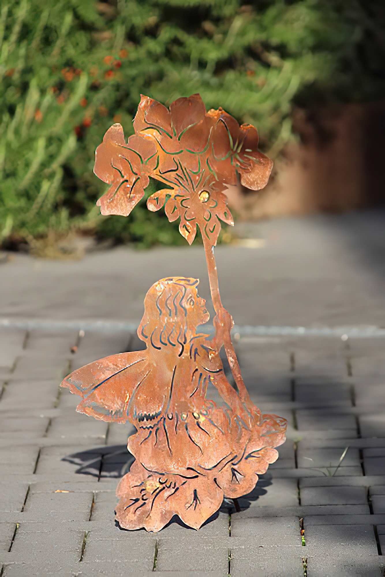 Eisenskulptur in Rost - Fee mit Blüte - Fee Wiesenschaumkraut