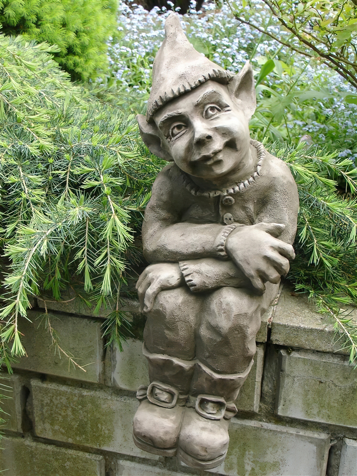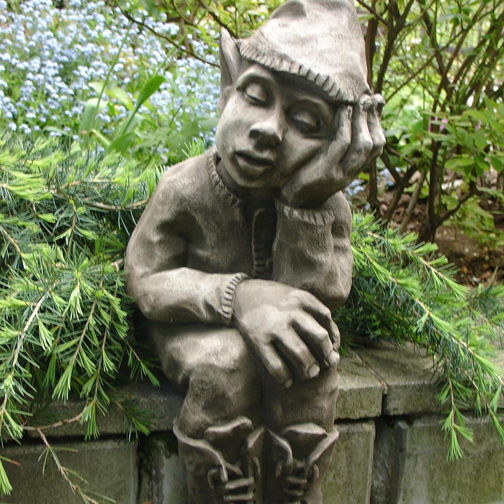 Kleiner Kobold sitzt und schaut - Bronze Gartendeko Figur - Pixie Fiffi