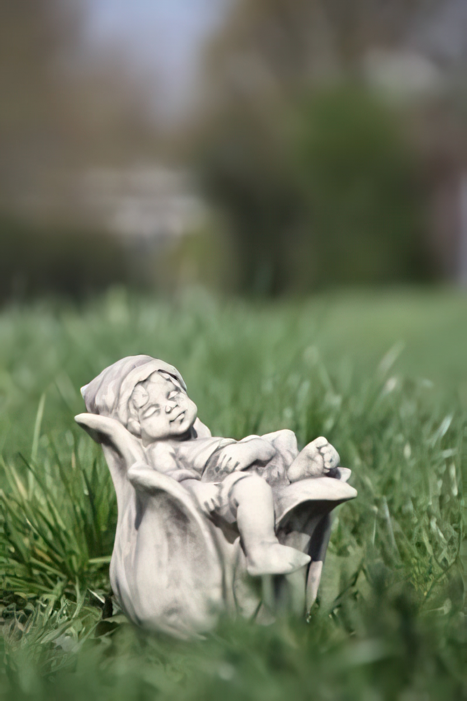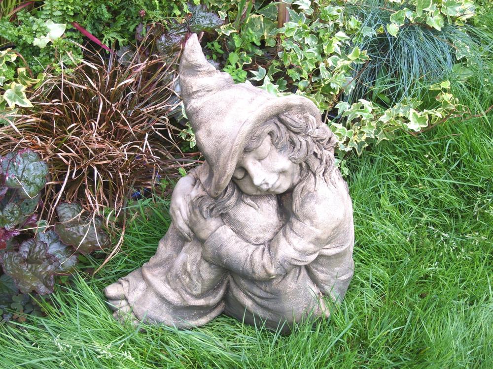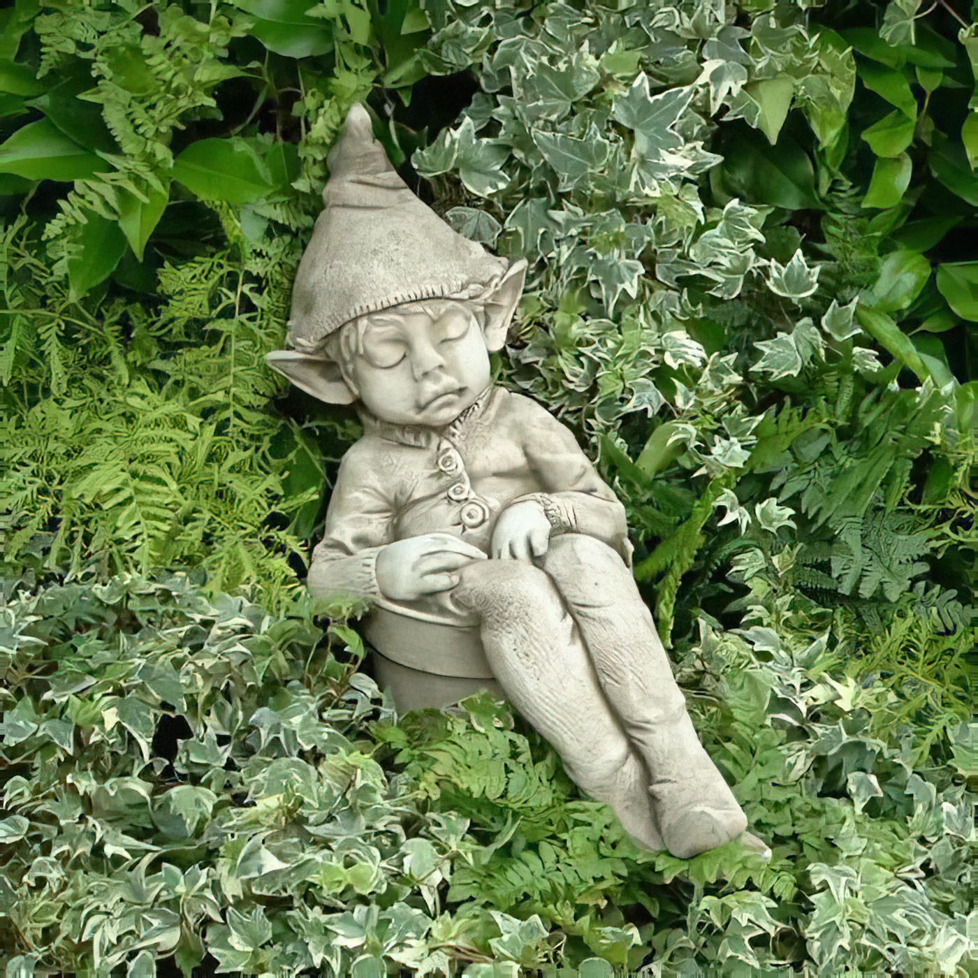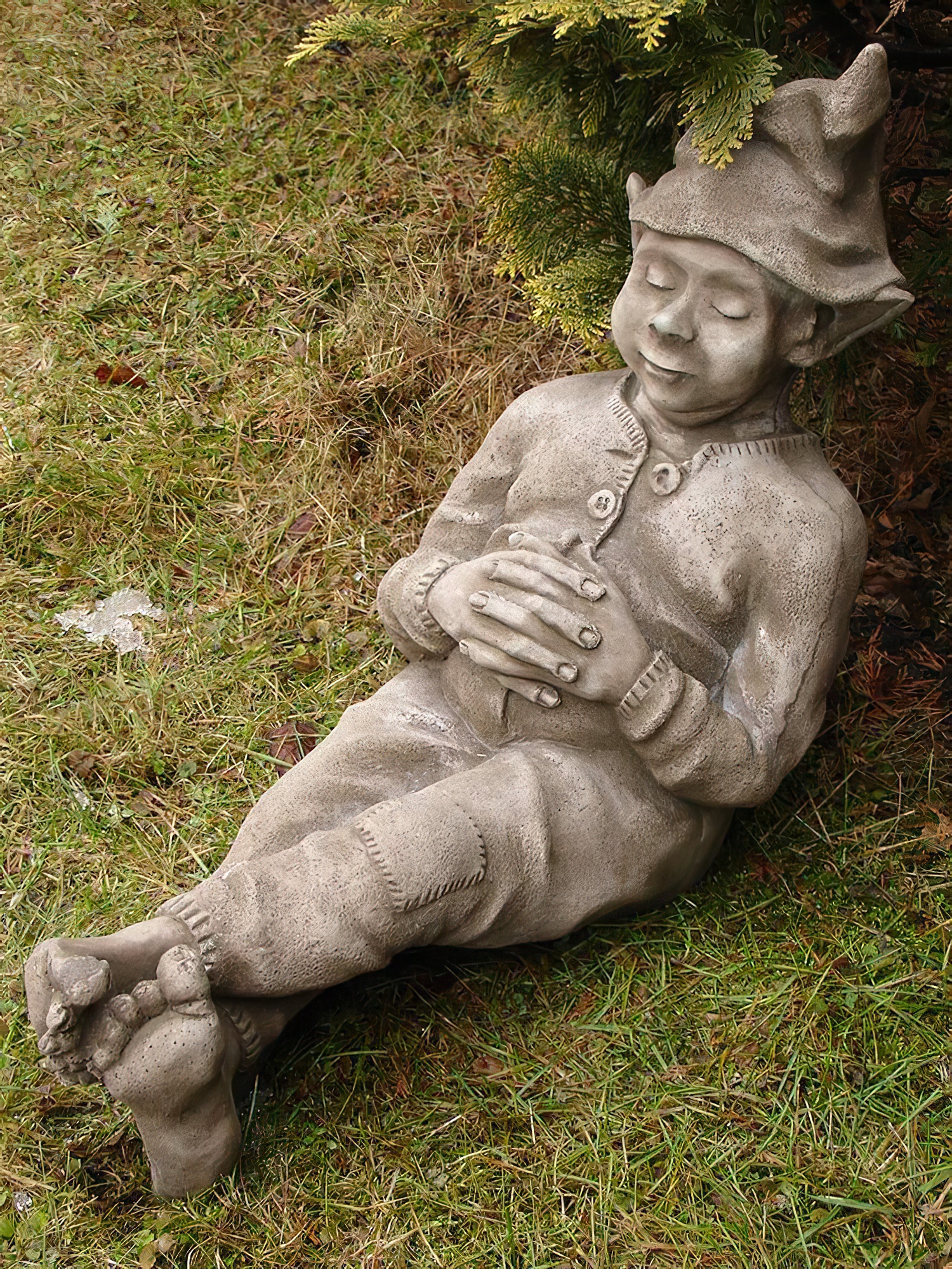 Schlafender Garten Wichtel aus Steinguss - Phineus Columba / ohne Stab