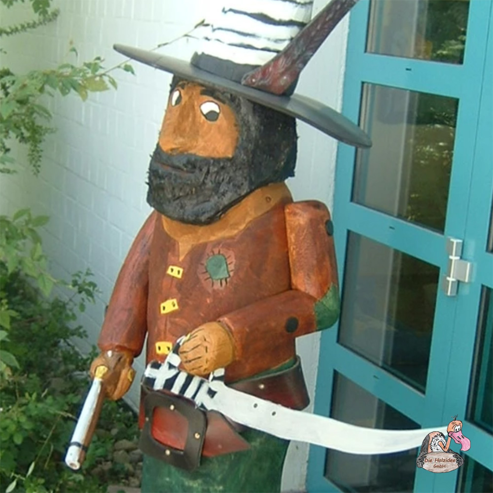 Bemalte Räuber Dekofigur aus Eichen- und Robinienholz - Räuber Hotzenplotz