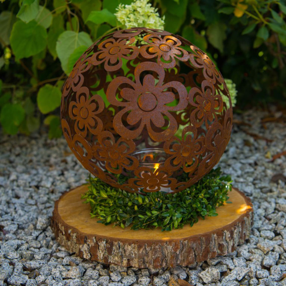 Garten Kugel aus Rost Metall mit Blumen - Palla Fiori