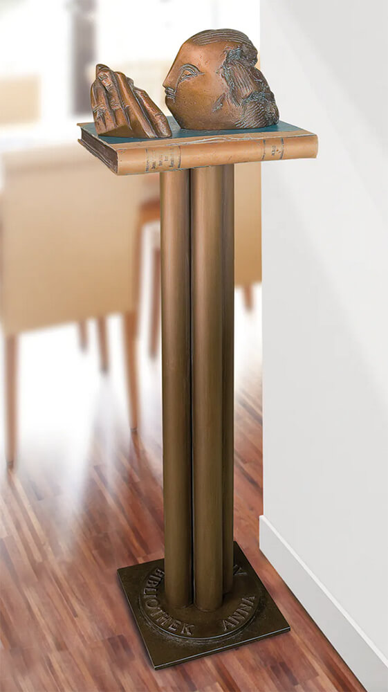 Buch auf einer Säule liegend - moderne Bronzeskulptur - Die Lesende