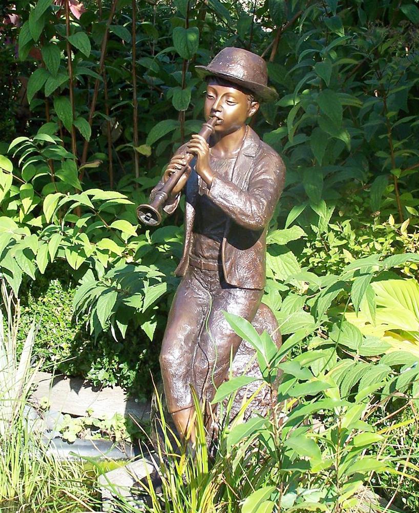 Sitzender Junge mit Flöte aus Bronze - limitiert - Flötenspieler