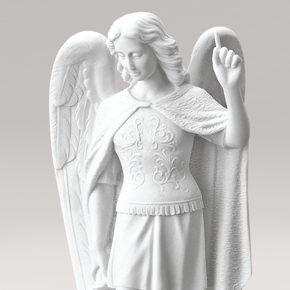 Großartige Engelsskulptur aus weißem Marmorguss - Engel mit Drachen
