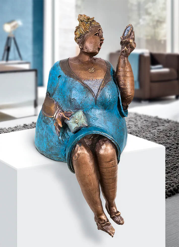 Sitzende Bronze Dame für Podeste und Fensterbänke - Koketa