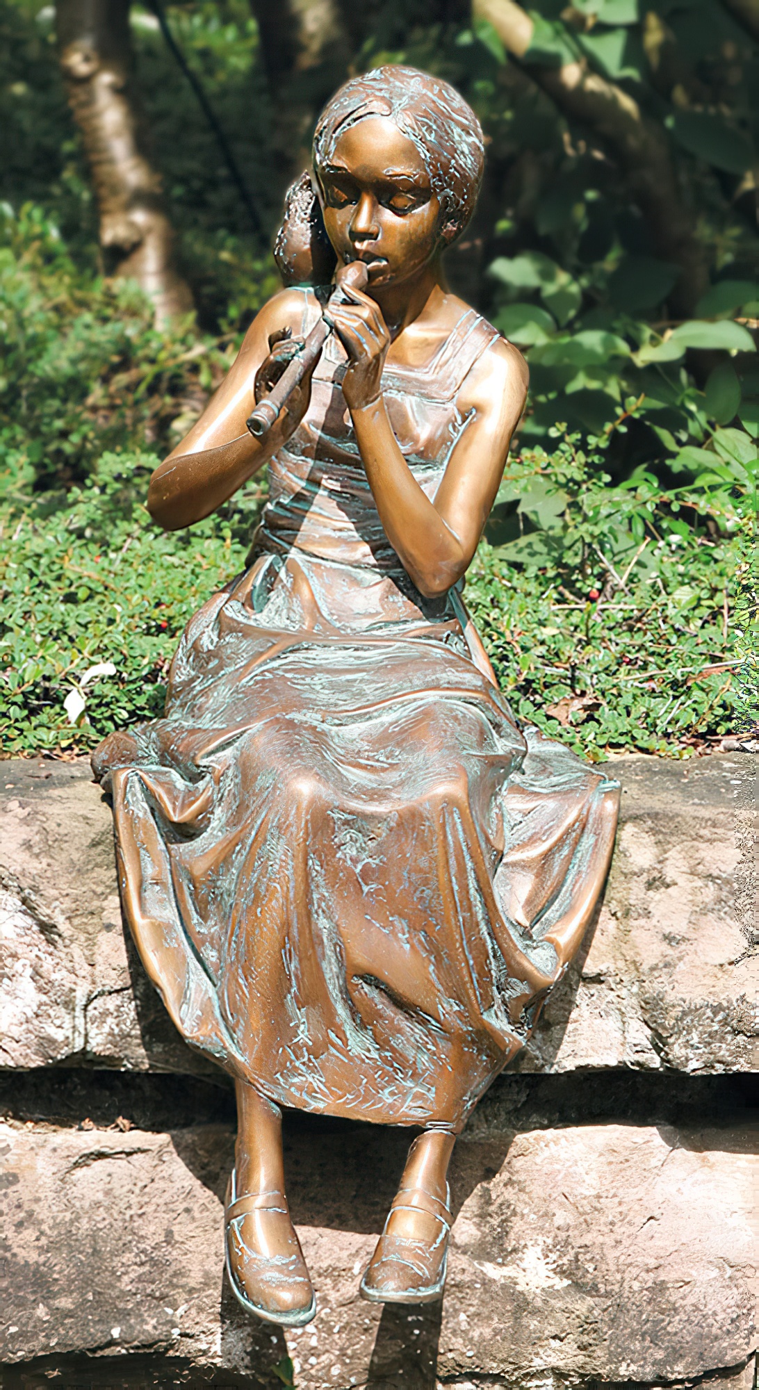Bronzestatuen Flötenspieler Set - limitierte Auflage - Mädchen und Junge Set