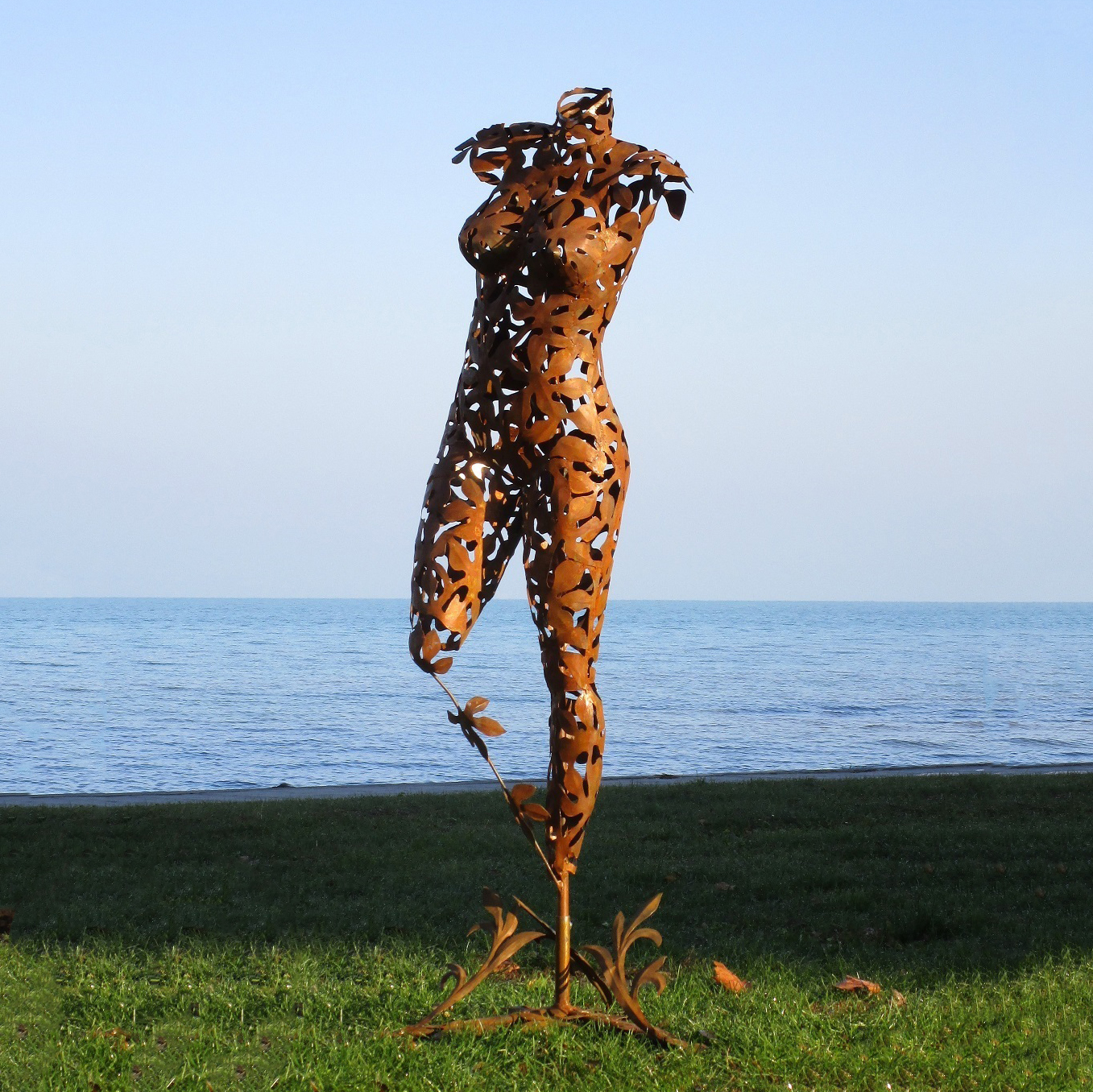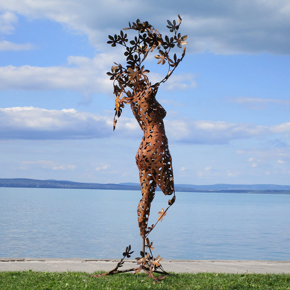 Abstrakter Frauen Torso mit Blätter Motiv - Edelstahl oder Rost Metall - Daphne / Stahl - Rost