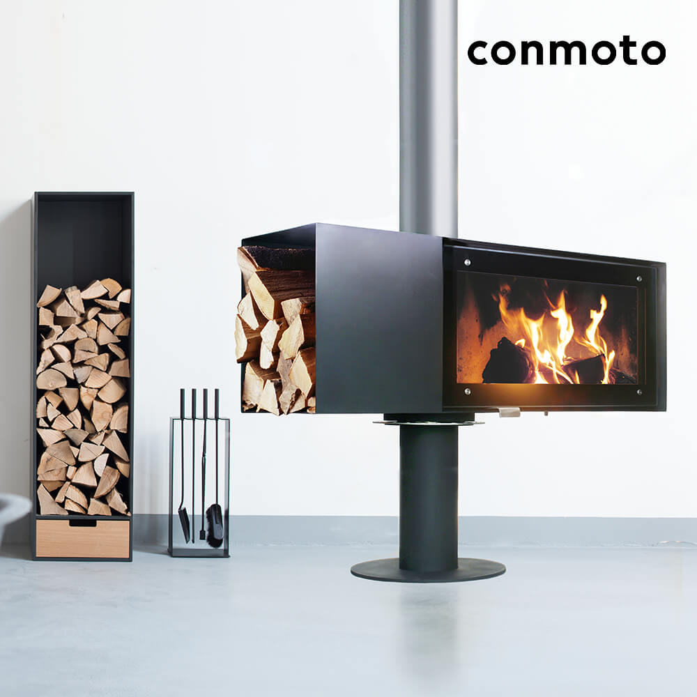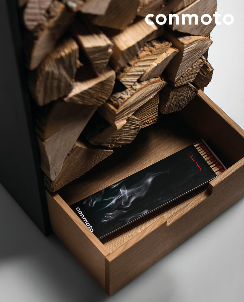 Brennholzregal mit Schublade aus Holz und HPL - Covo Holzregal