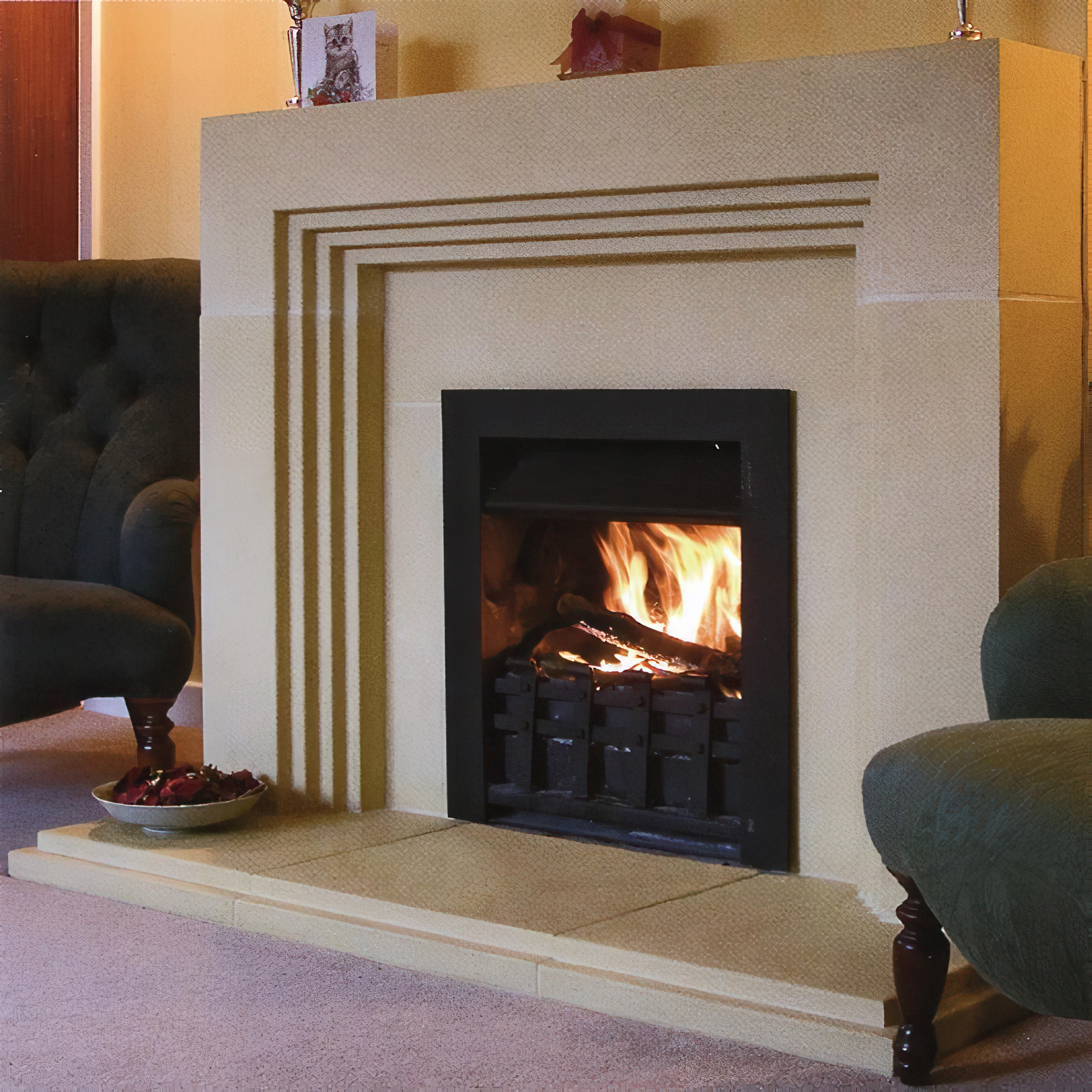 Klassische Kamineinfassung aus Stein - Osbald House / Sand