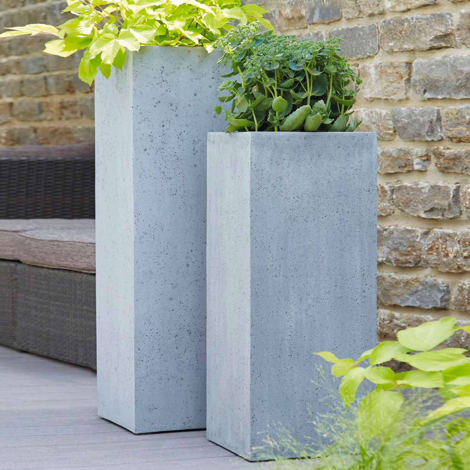 Moderner eckiger Pflanztrog für draußen - Steinzeug anthrazit - Macula Niger