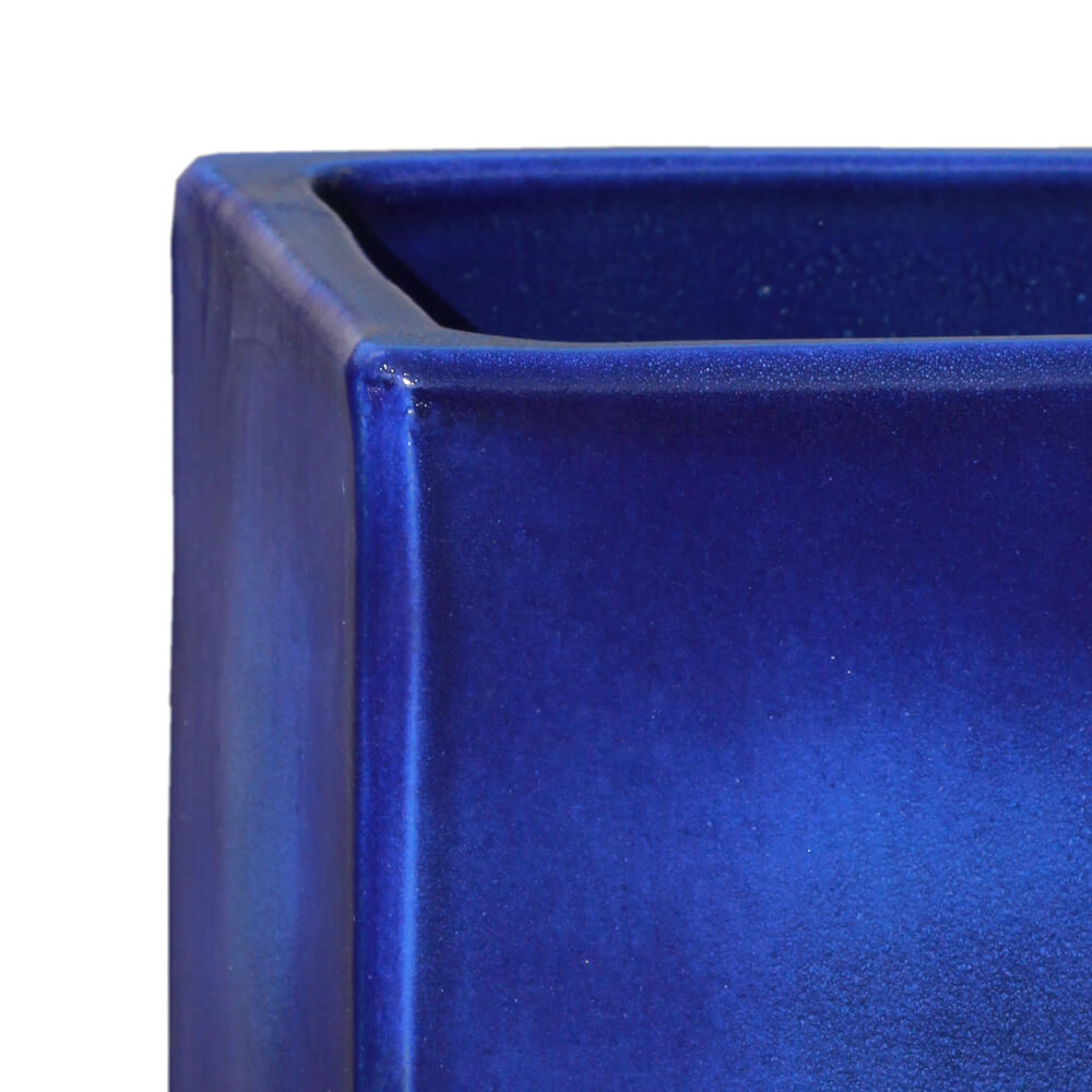 Quadratischer Blumenkübel für draußen - Steinzeug blau - Macula Azur
