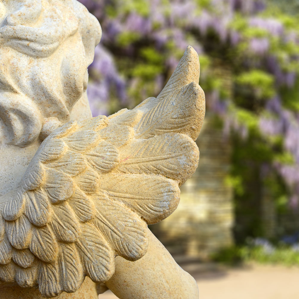 La fabrication de cette sculpture d'ange décoratif utilise la méthode traditionnelle de moulage en pierre. L'artiste crée d'abord une statue originale en caoutchouc naturel. Ensuite, un mélange de pierre reconstituée de haute qualité, composé de farine de grès et d'additifs minéraux, est soigneusement tassé dans le moule. Une fois la masse durcie, la figurine en pierre moulée est finie à la main avec soin et patinée. Cela garantit une grande solidité et une excellente résistance aux conditions climatiques. De plus, l'ange de jardin est conçu pour rester stable même par vents forts. C'est pourquoi nous offrons à nos clients une garantie de deux ans à partir de la date d'achat pour chaque ange décoratif en pierre moulée précieux de notre vaste sélection en ligne.